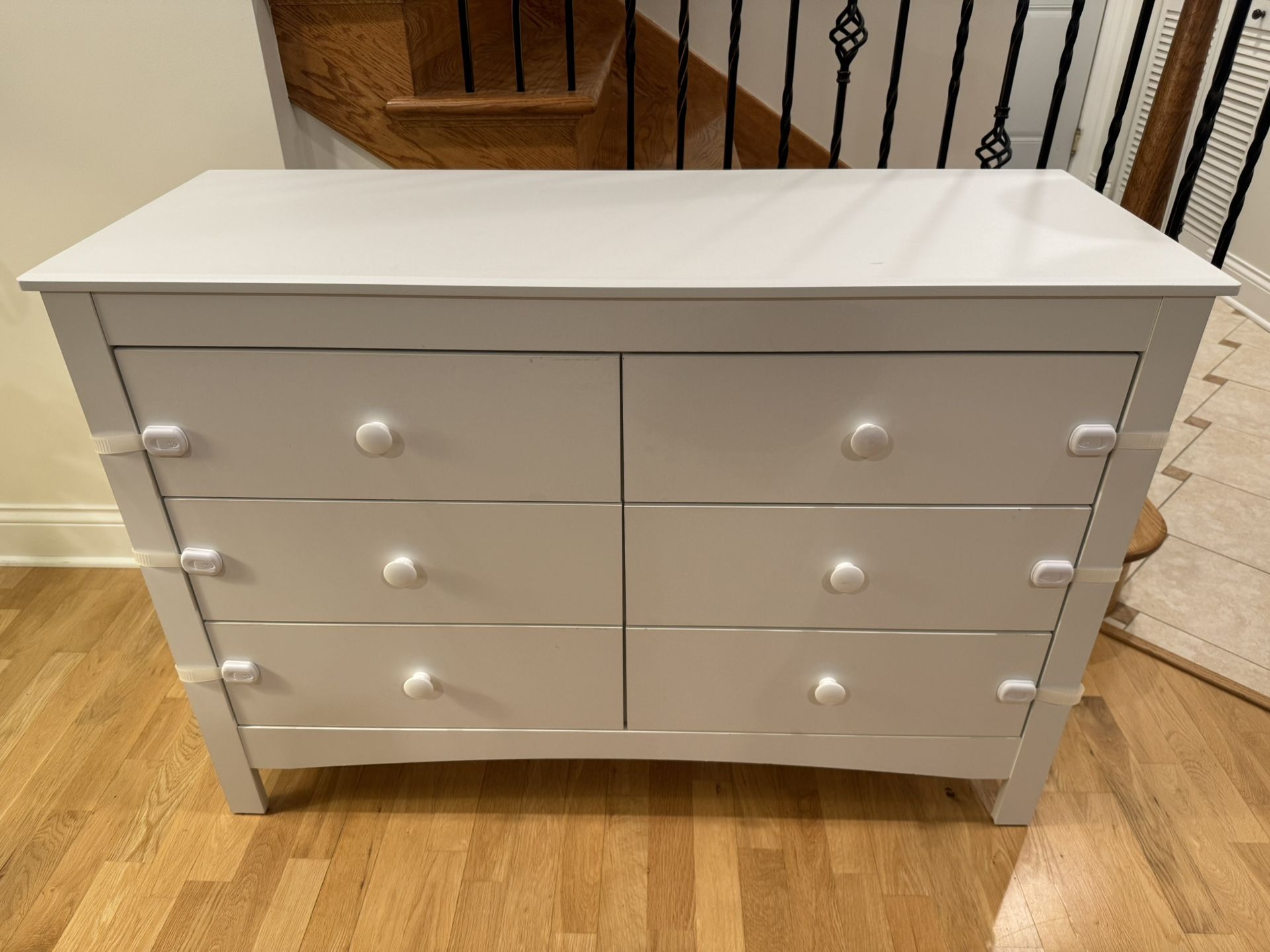 Like new! Graco Noah 6-Drawer Dresser (White) – GREENGUARD Gold Certified, White Dresser for Bedroom, Kids & Nursery Storage Chest, Safety Interlocking Drawers, Kids Chest. • 47” W x 17.5” D x 32” Tall • Drawers safety childproof locks are installed but they could be removed. • Pick up in Hoffman Estates by Harper College. Thank you.