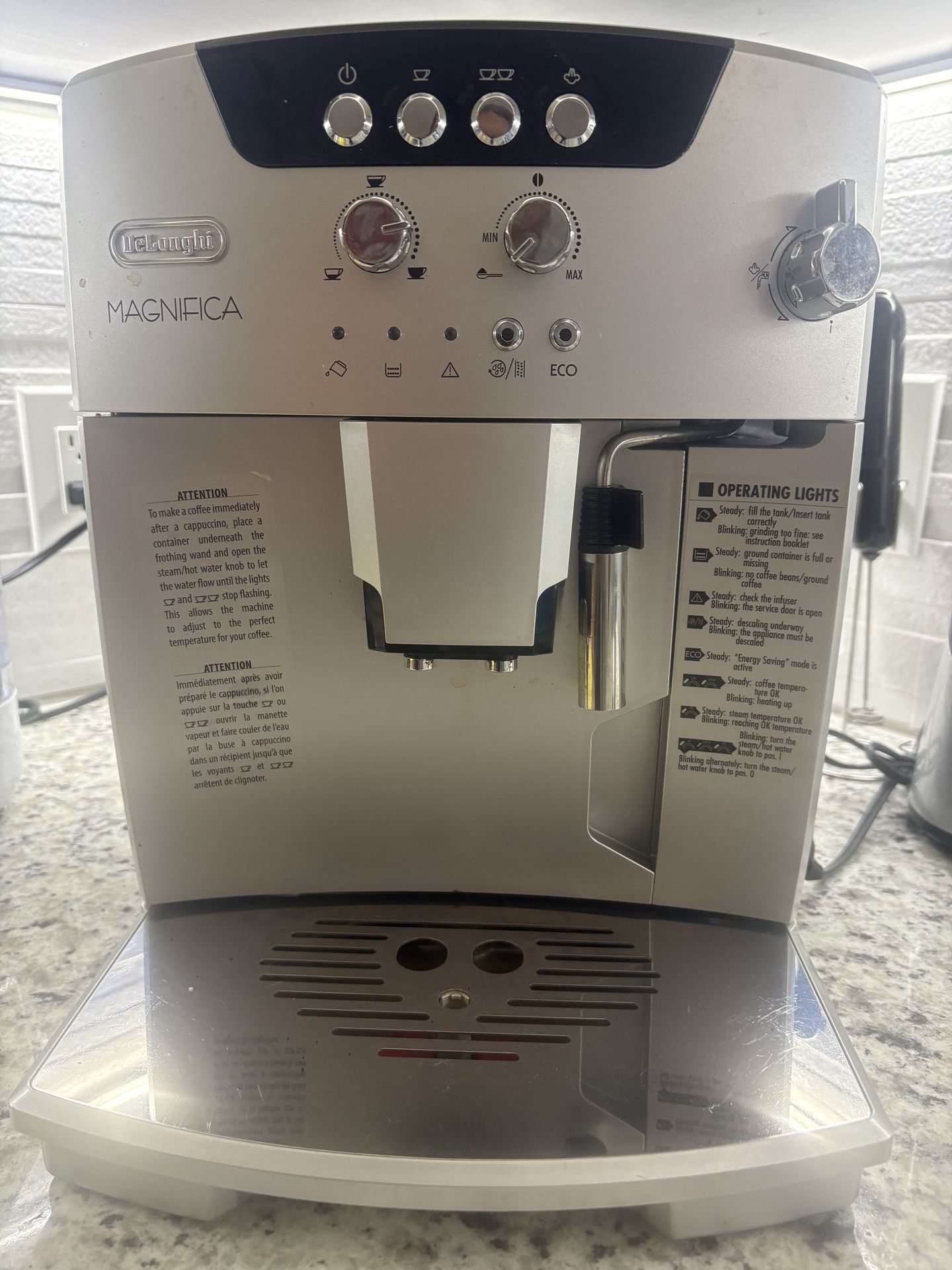 In excellent condition less the 6 months of use . Compact Automatic Cappuccino, Latte and Espresso Machine