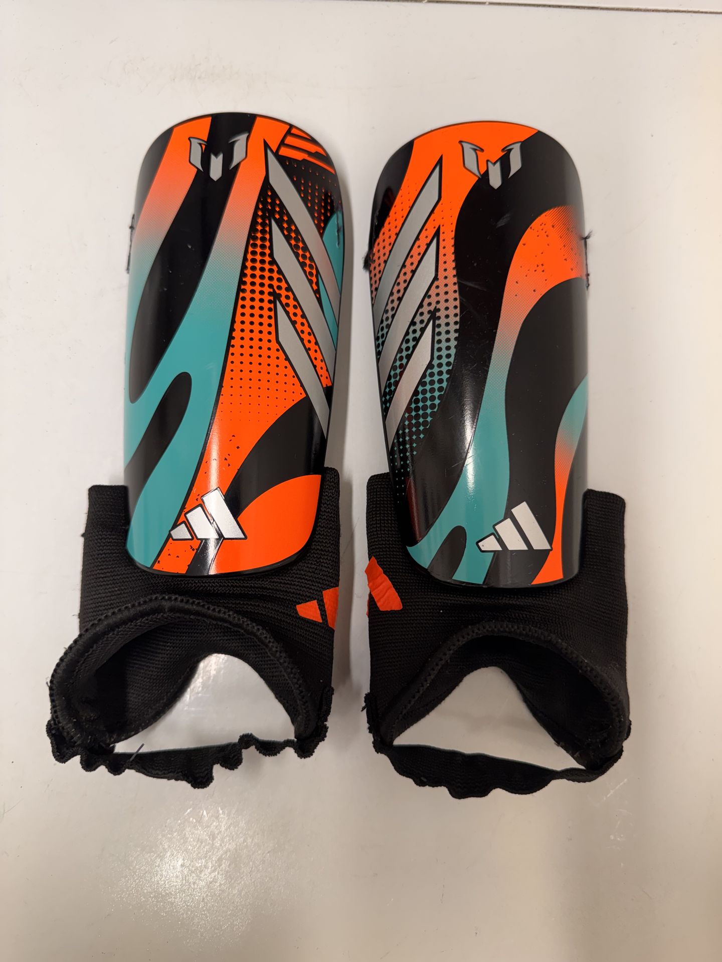 Adidas Messi Kids shin guards multi color. Size XSMALL for 3’11-4-‘6 or 6-9 year old. Pick up location off Crosstown & Bayshore Blvd.