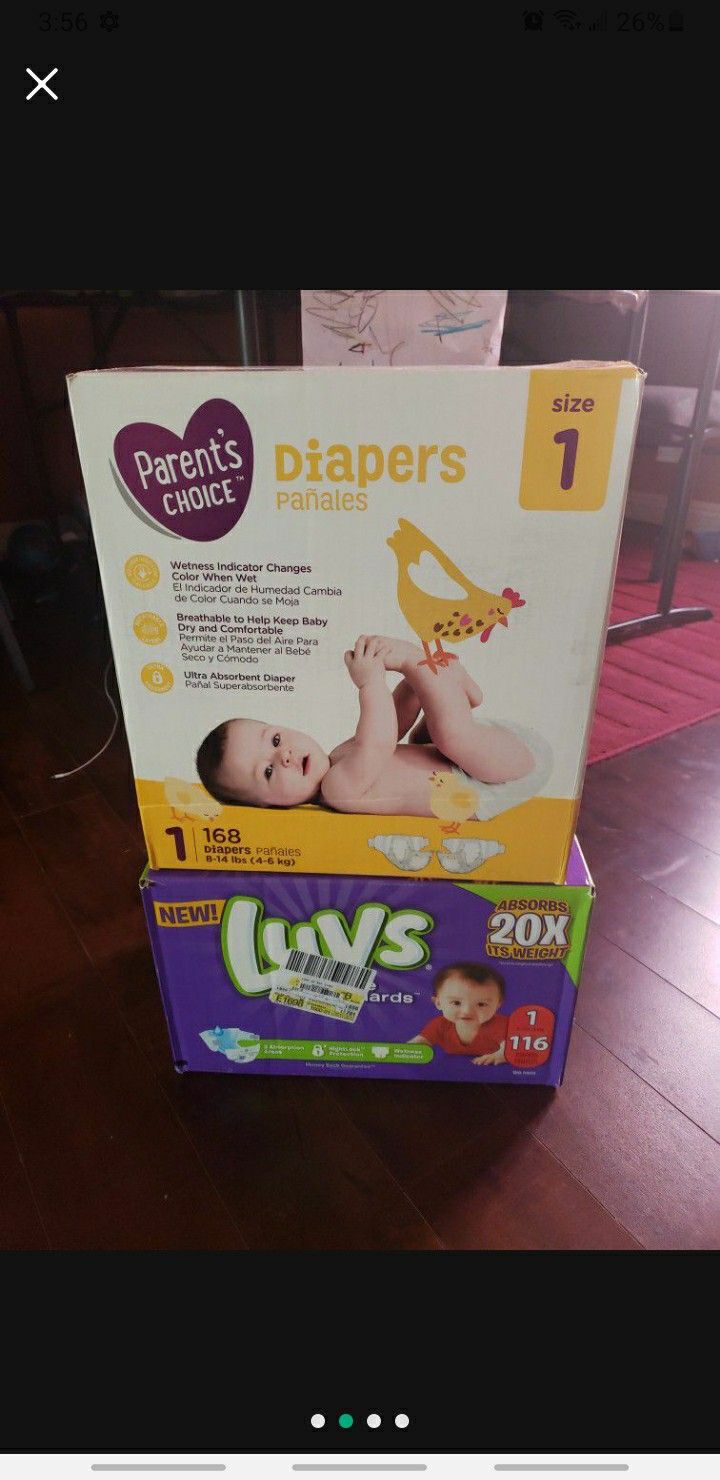 2 boxes new, never opened Size 1 I asking $30 for both. Hablo espanol.