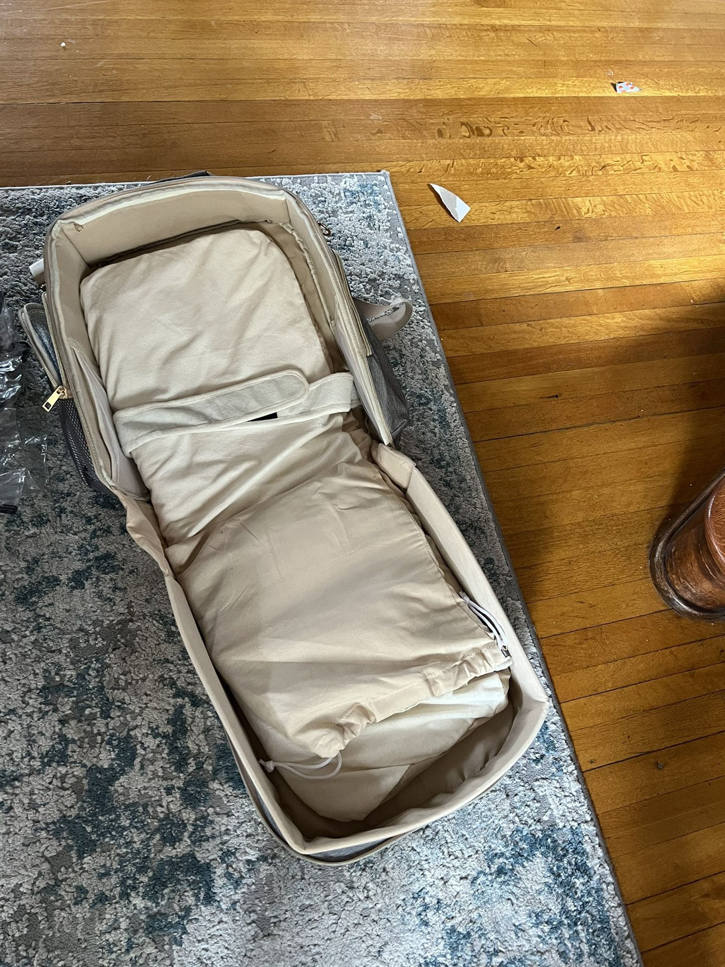 Travel Bassinet/diaper bag combo. This was super handy traveling with our infant. It folds out to a handy bed!