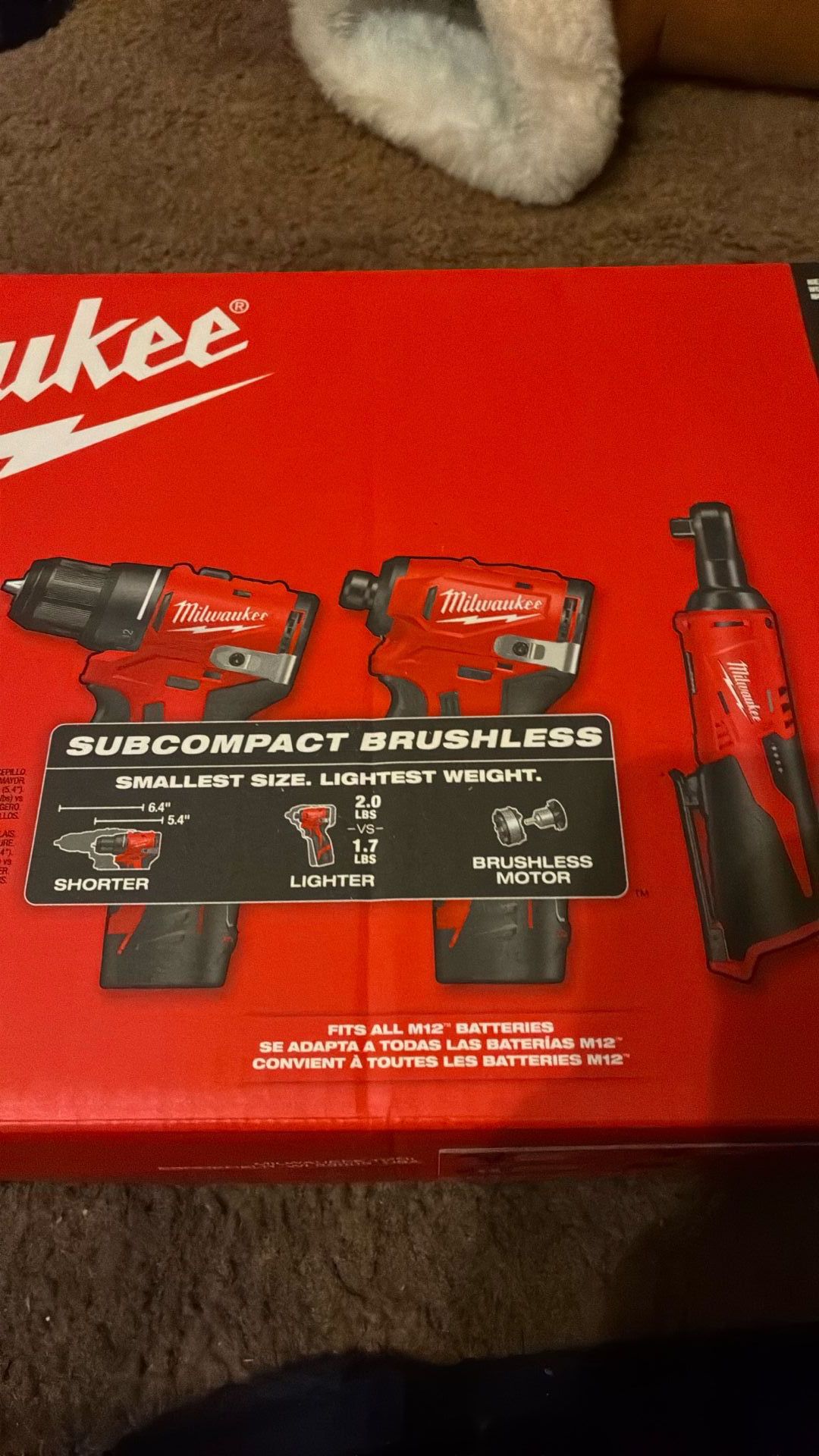 M12 FUEL 12V Lithium-Ion Cordless Drill Driver, Impact Wrench, and Ratchet Combo Kit (3-Tool) w/Batteries, Charger & Bag