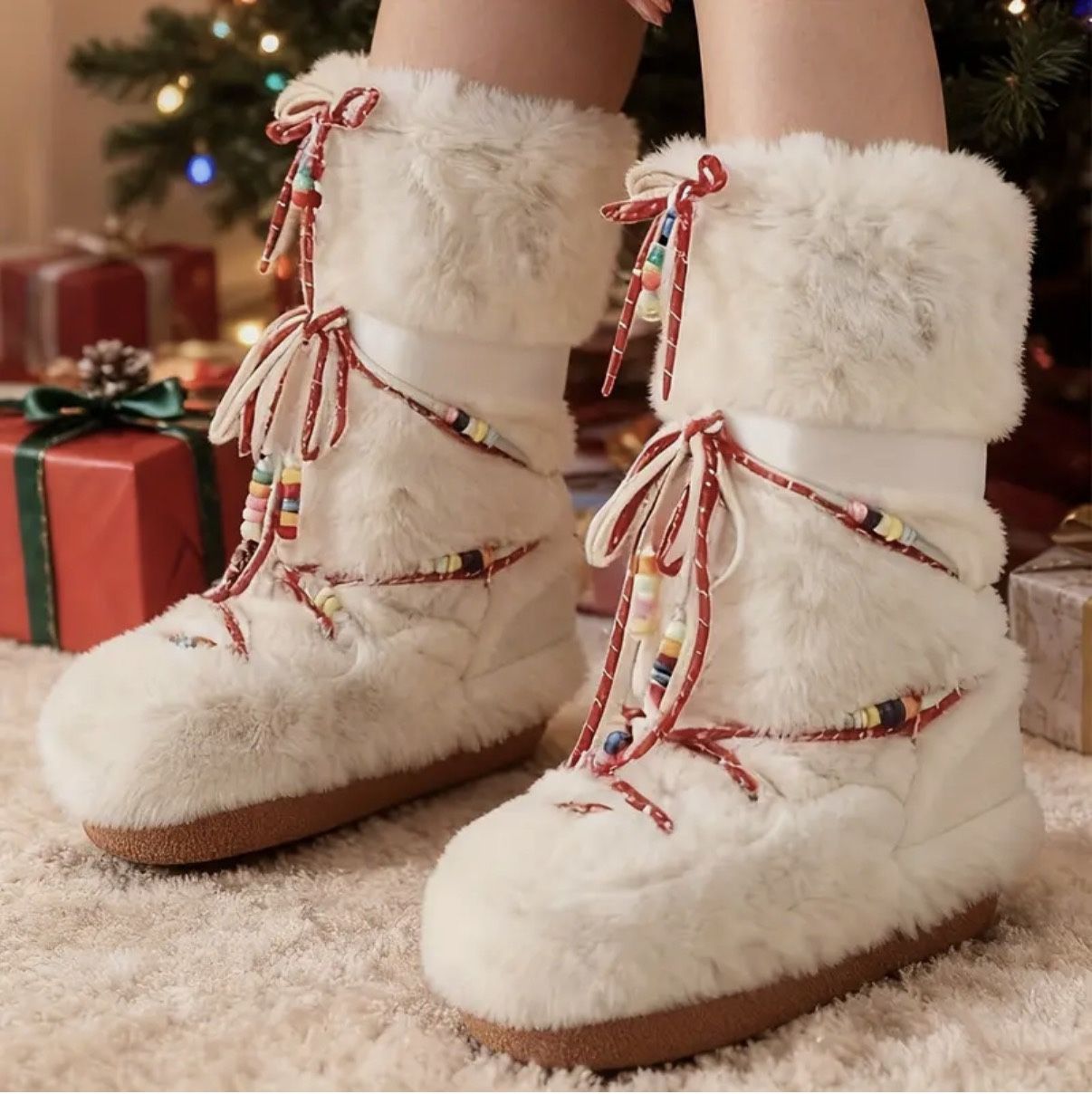 Women'S Winter Warm faux fur Snow Boots with Plush Lining - Cozy Round Toe Lace-Up Mid-Calf Boots, Slip-Resistant Rubber Sole & Cushioned EVA Insole, Soft PU Cover Upper, Fluffy Fuzzy Insulation for Cold Weather, Casual & Semi-Formal Outfits () - Ea