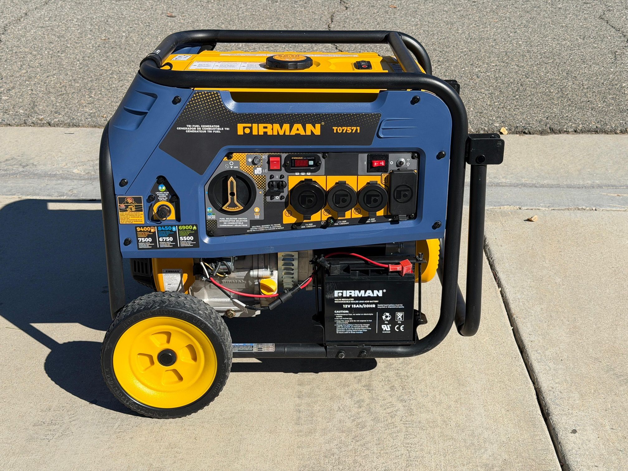 Used just for 12 hours,like new ! 3 Fuel Support : GAS, LPG, NG - Tri Fuel Generator ONLY 12 Hour running time meter, Same Like New 439cc tri fuel engine 8 Gal Tank Running 12 Hours Electric start - One Button to start Recoil start - One pull to start Low oil shut off Cast iron sleeve Starting watts 9400W (GAS), 8450W (LPG). 6900W (NG) Running watts 7500W (GAS), 6750W (LPG), 5500W (NG) 120/240 volts