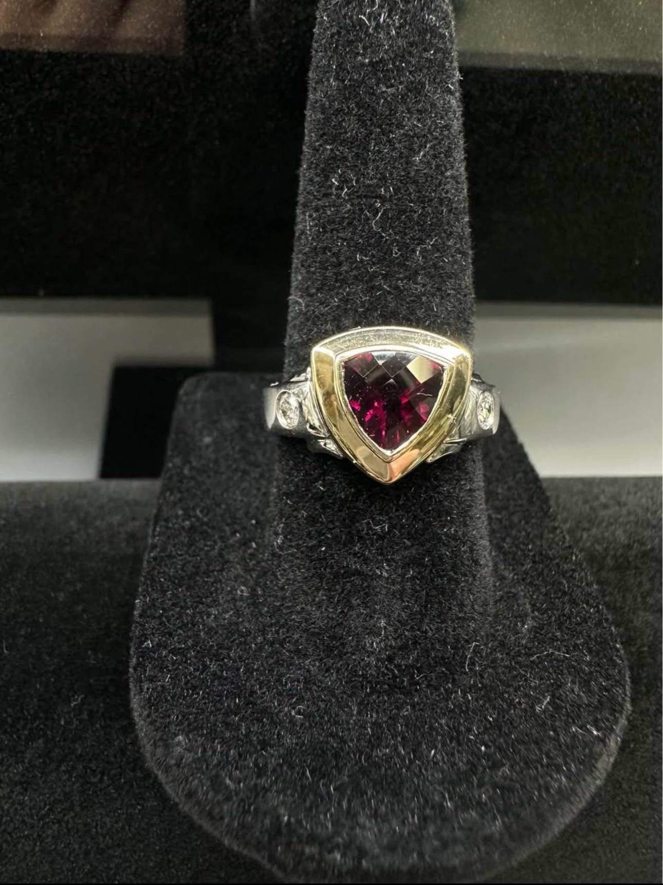 Description Gorgeous 14k Two tone ring W garnet stone & diamonds! size:7 located at 3816 steilacoom blvd sw lakewood wa 98499 - crown jewelry 20% off all jewelry in store for memorial day!🌺☀️ please reach out with further questions!
