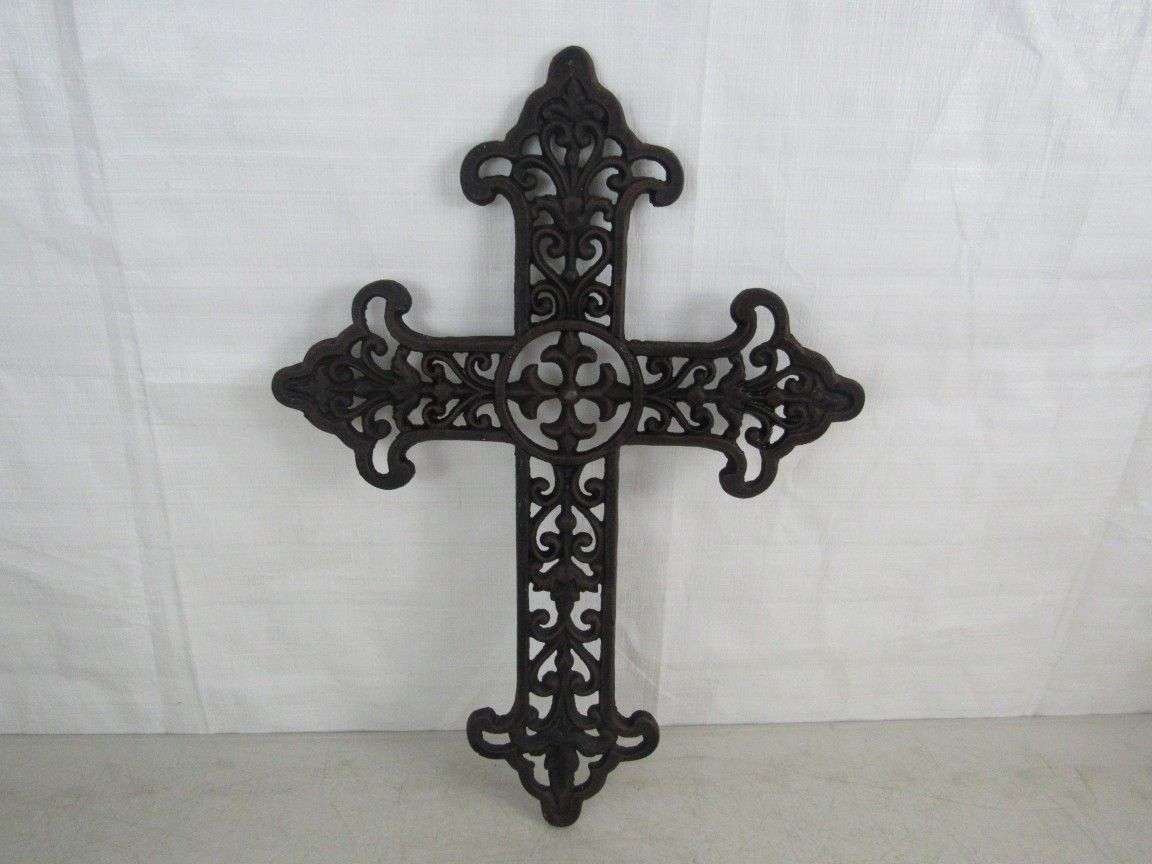 Crucifix Cast Iron Vintage Ornate Religious Cross Wall Decor 18" Tall