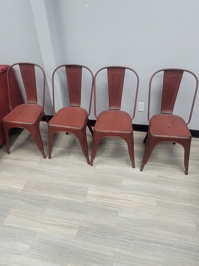 Set of 4 industrial style metal chairs. Strong , durable, and easy to clean. Great for office, break room, or patio. Good condition with normal wear. Pick up only. $30 each or $110 for all.