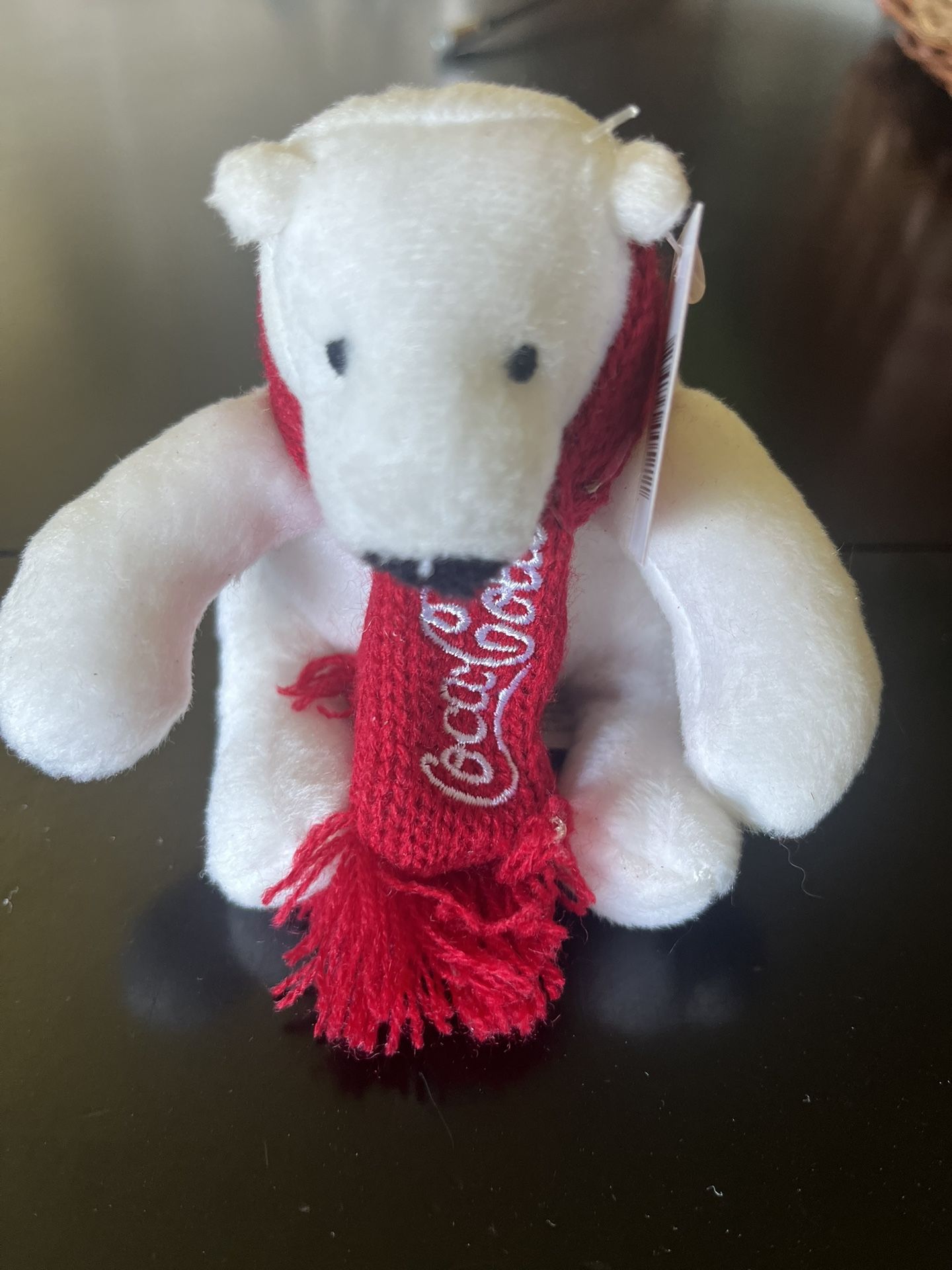 Mini 4" Coca-Cola Plush Polar Bear with Red Scarf & Original Ear Tag. In excellent, LIKE NEW, condition.