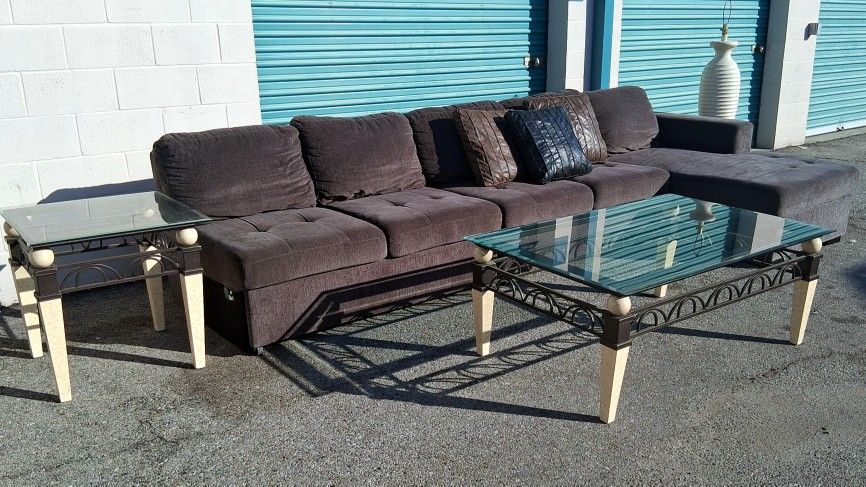 Large 3pc. Sleeper/Sectional. Well built, heavy. Very good condition. Very comfortable. Freshly steam cleaned. Some people say its gray, some say its olive green.