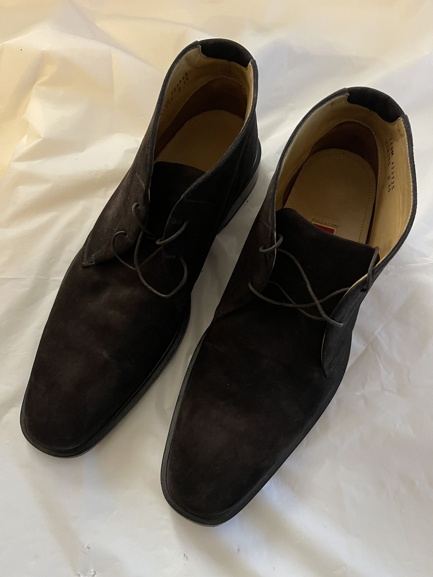 Preowned Cole Haan Men’s Dark Brown Suede Chukka Lace-up Ankle Boots | Size 11.5M | Suede Good condition with some signs of wear on heel edges. See all photos for condition. Upper Material: Suede Insole Material: Leather Lining Material: Leather Clean and Sanitized Asking: $49. Cash/Cashapp/Zelle Available for local pickup Mon-Sun, including holidays. If Listing is up, they are still available.