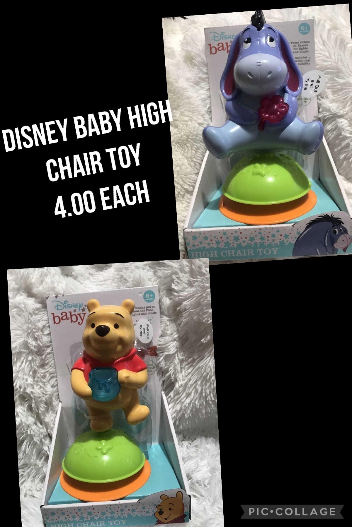 Disney Winnie Pooh high chair toys Suction cup, press honey pot for lights and sounds New in package •Eeyore - 1 available •Winnie Pooh - 2 available Metairie porch pick up (airline park subdivision) Crossposted App payments accepted