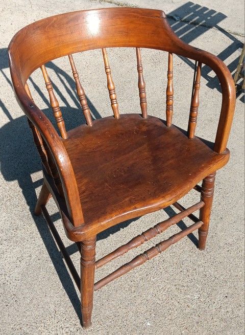 Pre-owned, normal wear from use. Antique rustic primitive Pub Captains barrel back chair, maple wood, circa early 1900’s. Beautiful Patina