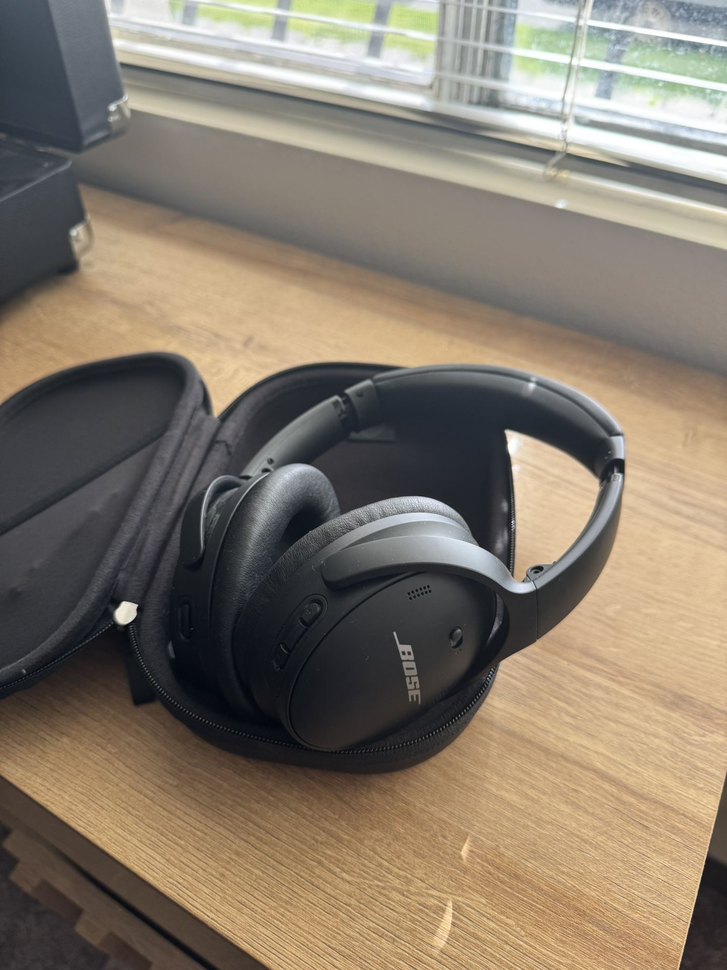 Selling my Bose QuietComfort Noise-cancelling headphones. I have the original packaging in hand. These are in pristine condition, and include their original case and charger. The noise cancelling in these is fabulous, better than Airpods especially since they go over the ear. The sound is incredible, you get great low end for how compact they are. They look stylish, and fit perfectly into their compact case. Highly durable too. Would recommend to anyone. Asking $140. Reach out with any questions or offers. Open to some trades, mostly music equipment.