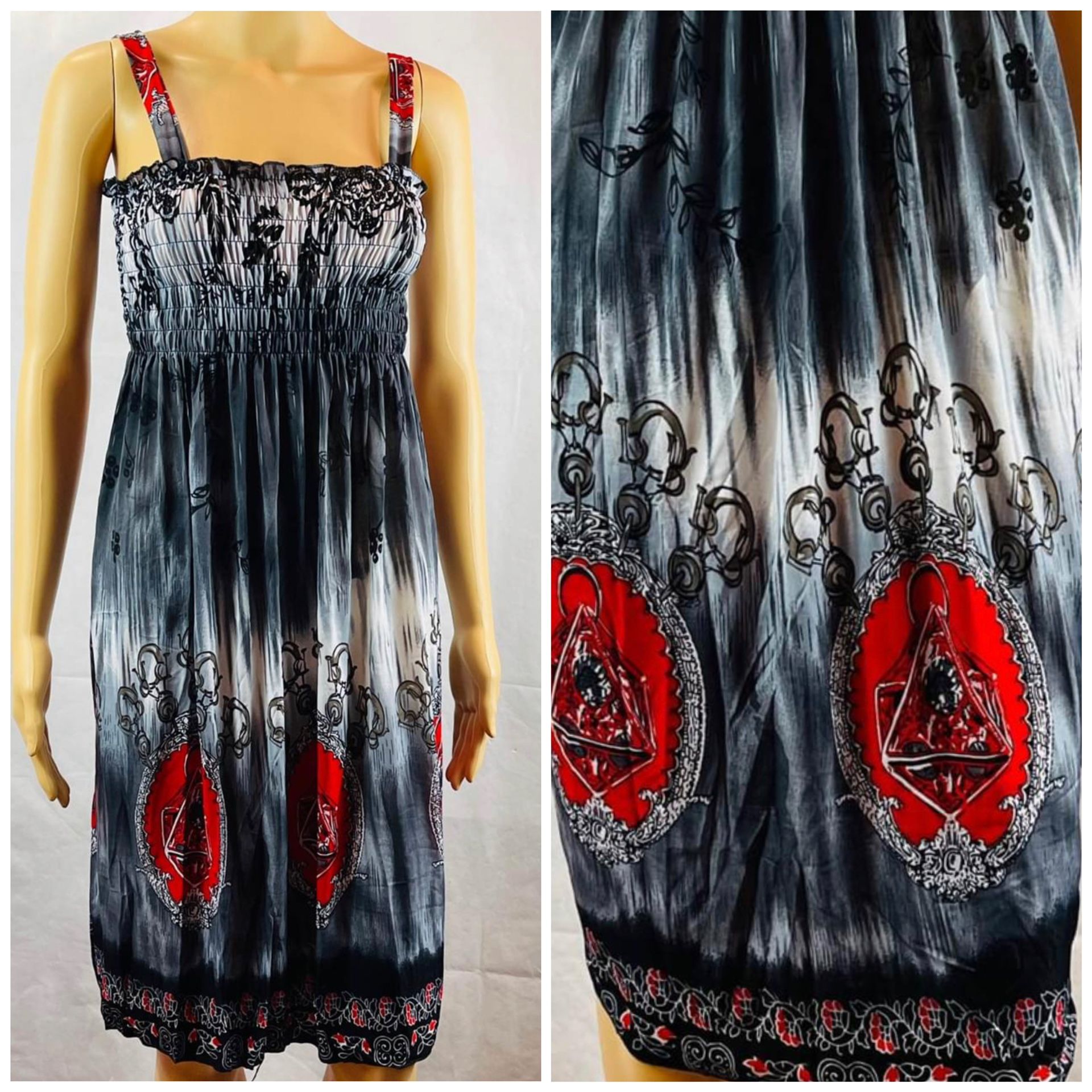 PRICE FIRM, pick up in Minooka or we can ship! Brand New Multi Lightweight Summer Dress Size Medium Measurements while lying flat: Length: 37” Bust: 13”-“18 Dress flares out under the bust and will accommodate any waist or hip size. Dress is very stretchy. SKU: 0109