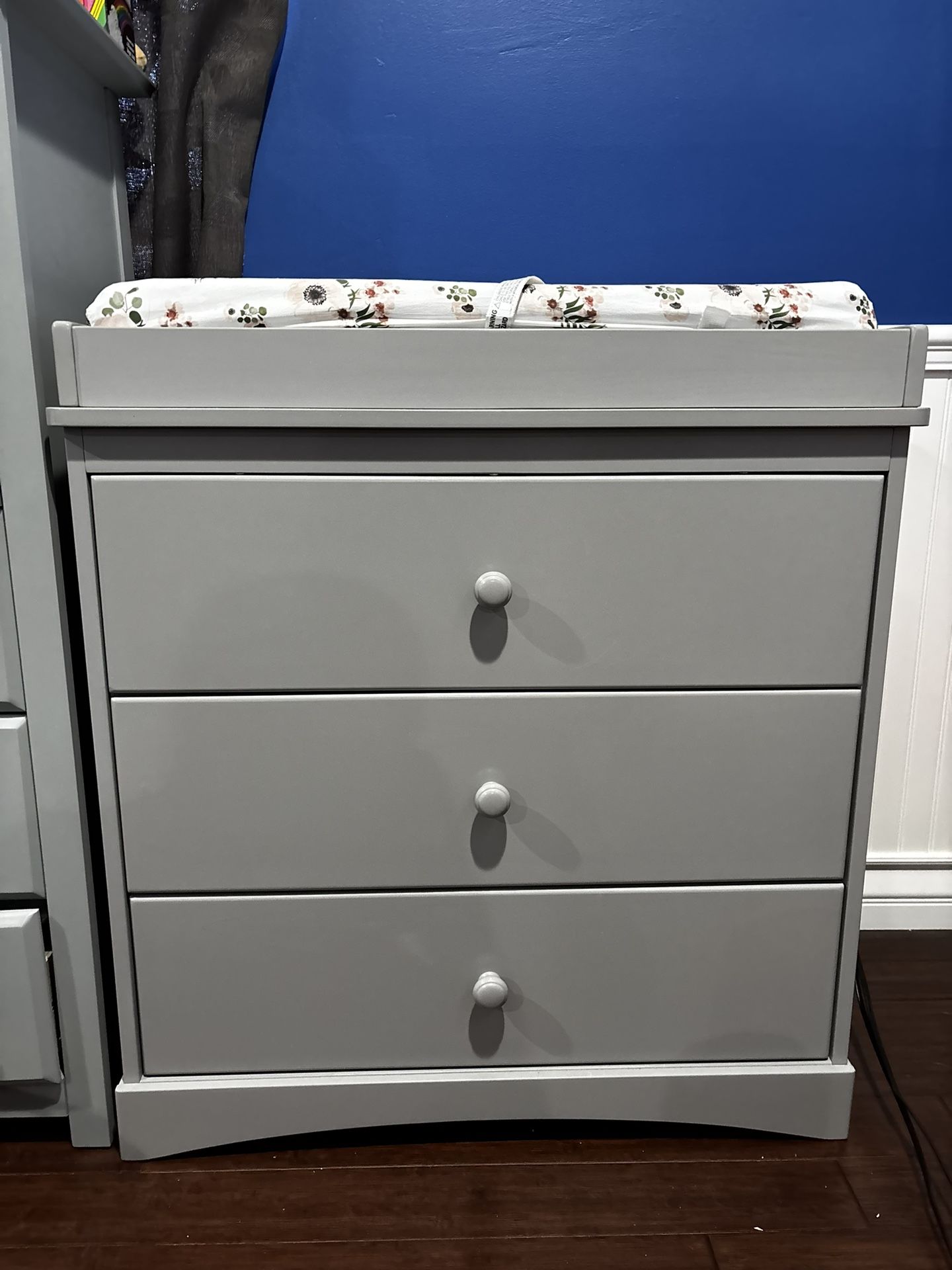 Delta children Gray 3 Drawer Dresser with changing top. Serta baby/toddler crib mattress