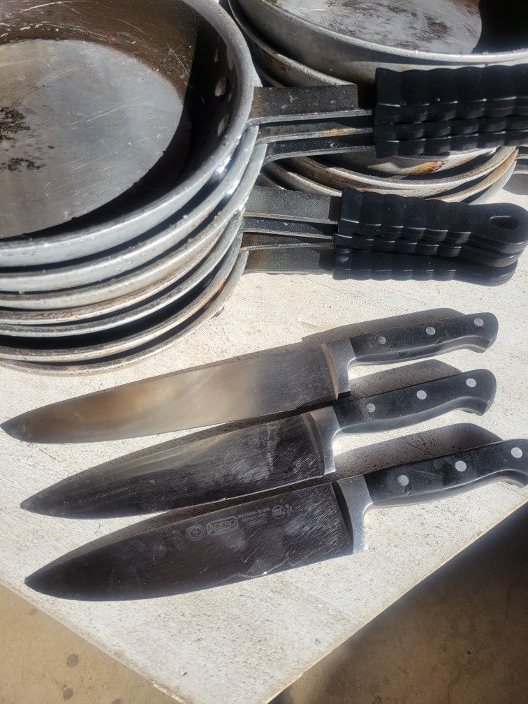 Aluminum pans 14 ,,$ 1 pans each chefs knifes $5 each