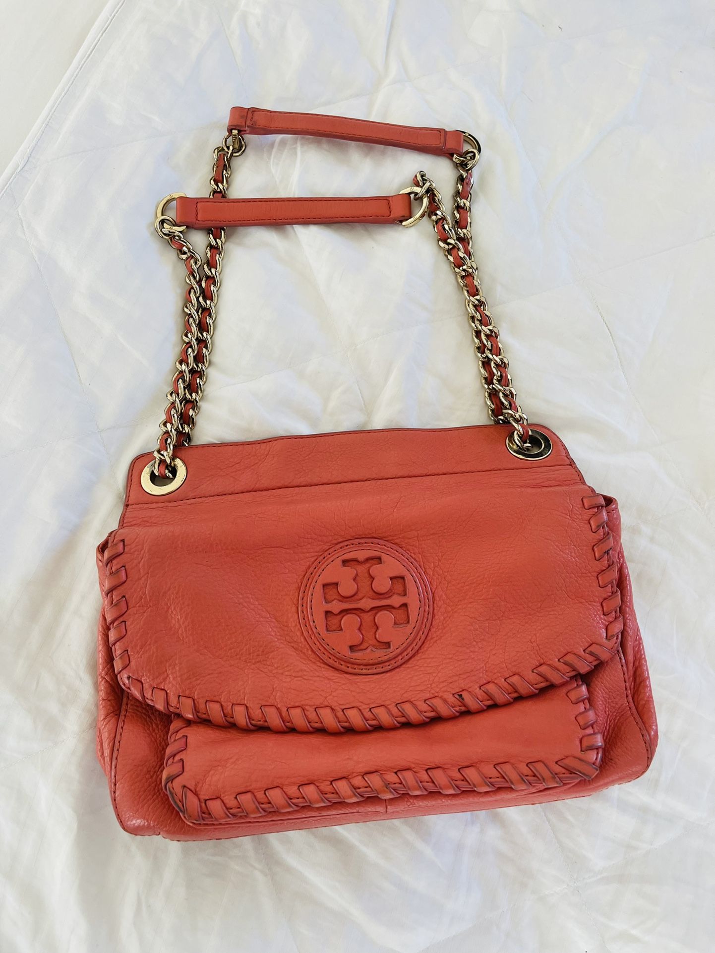 Tory Burch all leather handbag. Nicely made, has lots of life left. Can be a shoulder or crossbody bag. Chain in good condition. Originally was $499.00. Asking $45 obo. All sales final. Thank you.