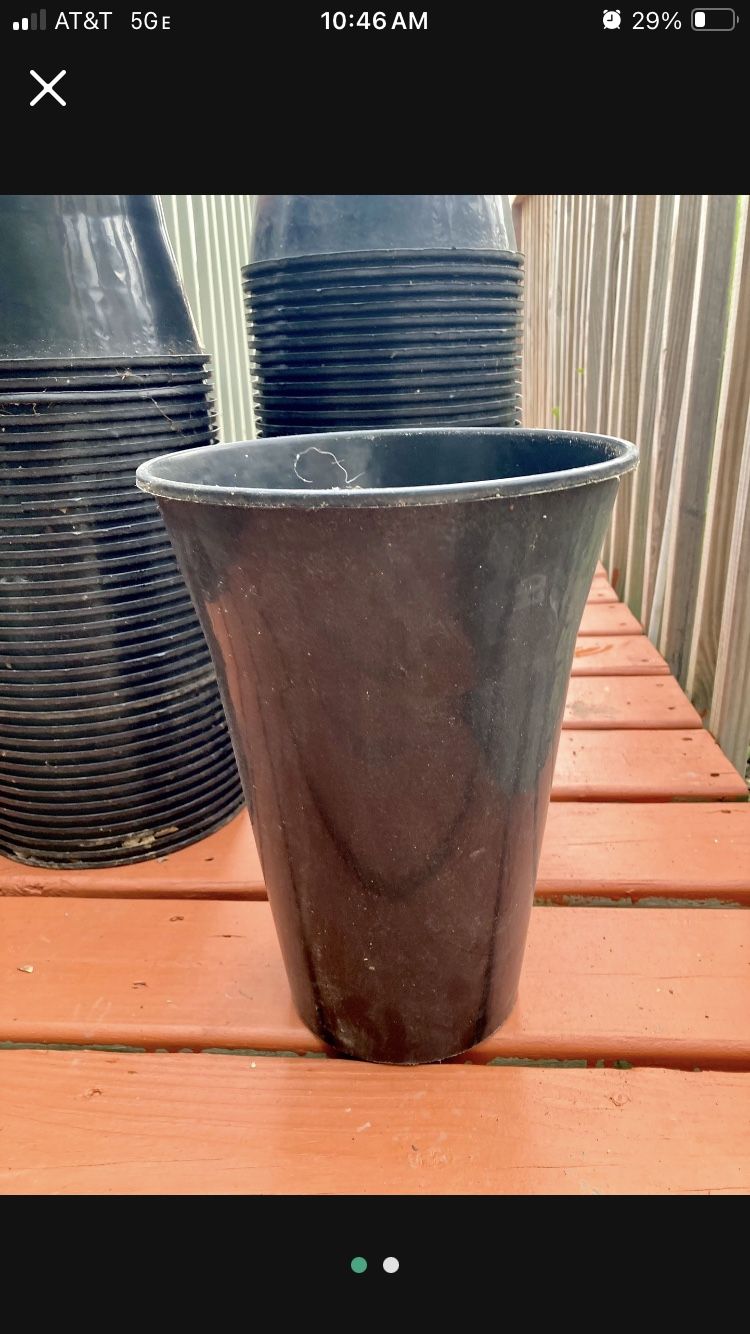 Extra large stackable black heavy plastic nursery pots. Eco-Green-Plus. Holds 8 liters. No drain. Usually seen in flower shops for cut flower display. 10”wide. 13-1/2” tall. Great for indoor outdoor use. I have 76. NEW. Asking $1 each. Deal on quantity. Pick up in Glendale Heights. Check out my other posts please for more indoor planters