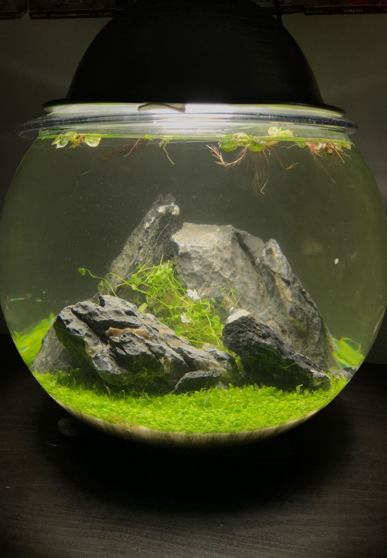 3 gallon planted fish tank bowl fully grown carpet plants and mountain stone