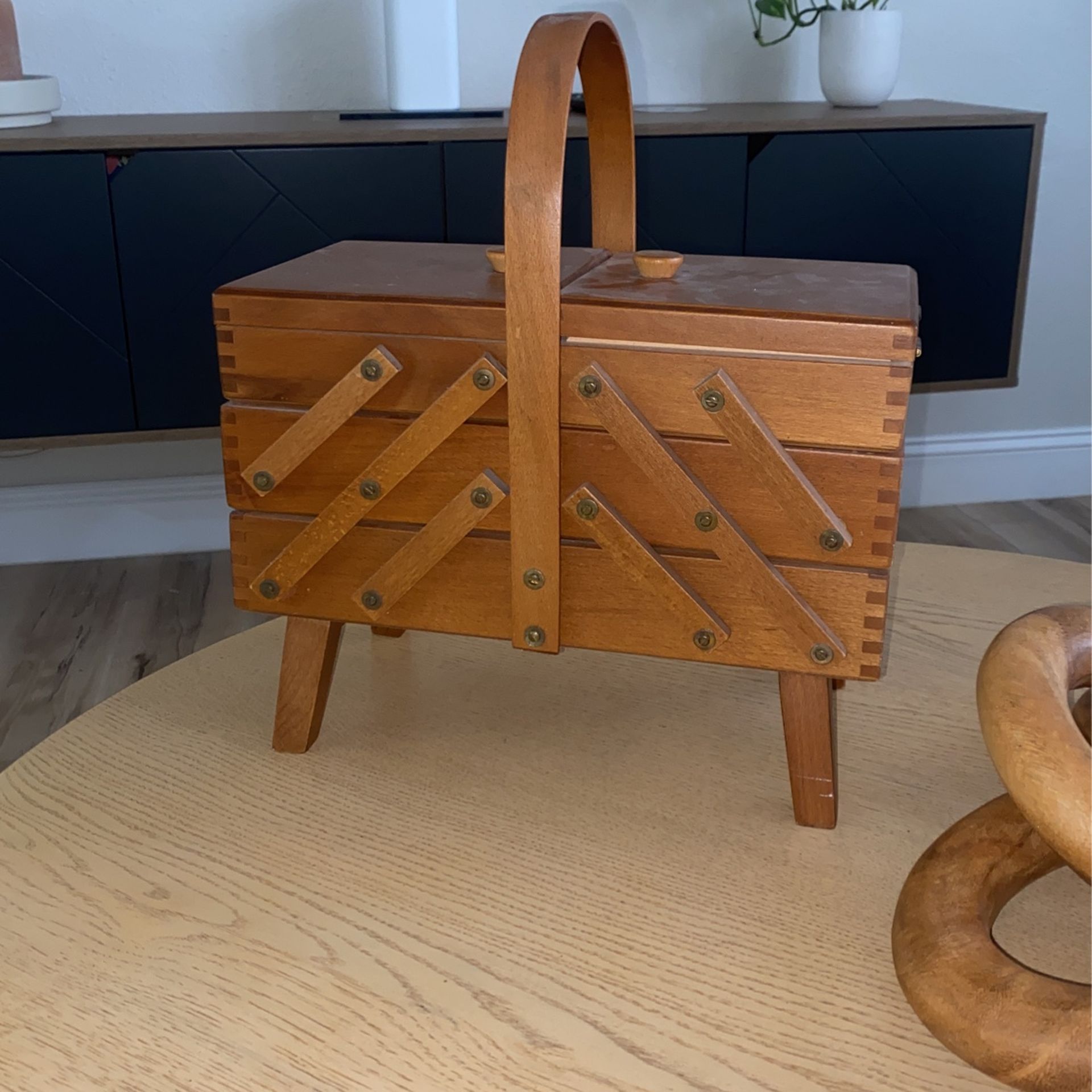 Vintage sewing kit divider. Solid wood. Amazing piece. Screws can be tightened a bit, but the condition is 10/10.