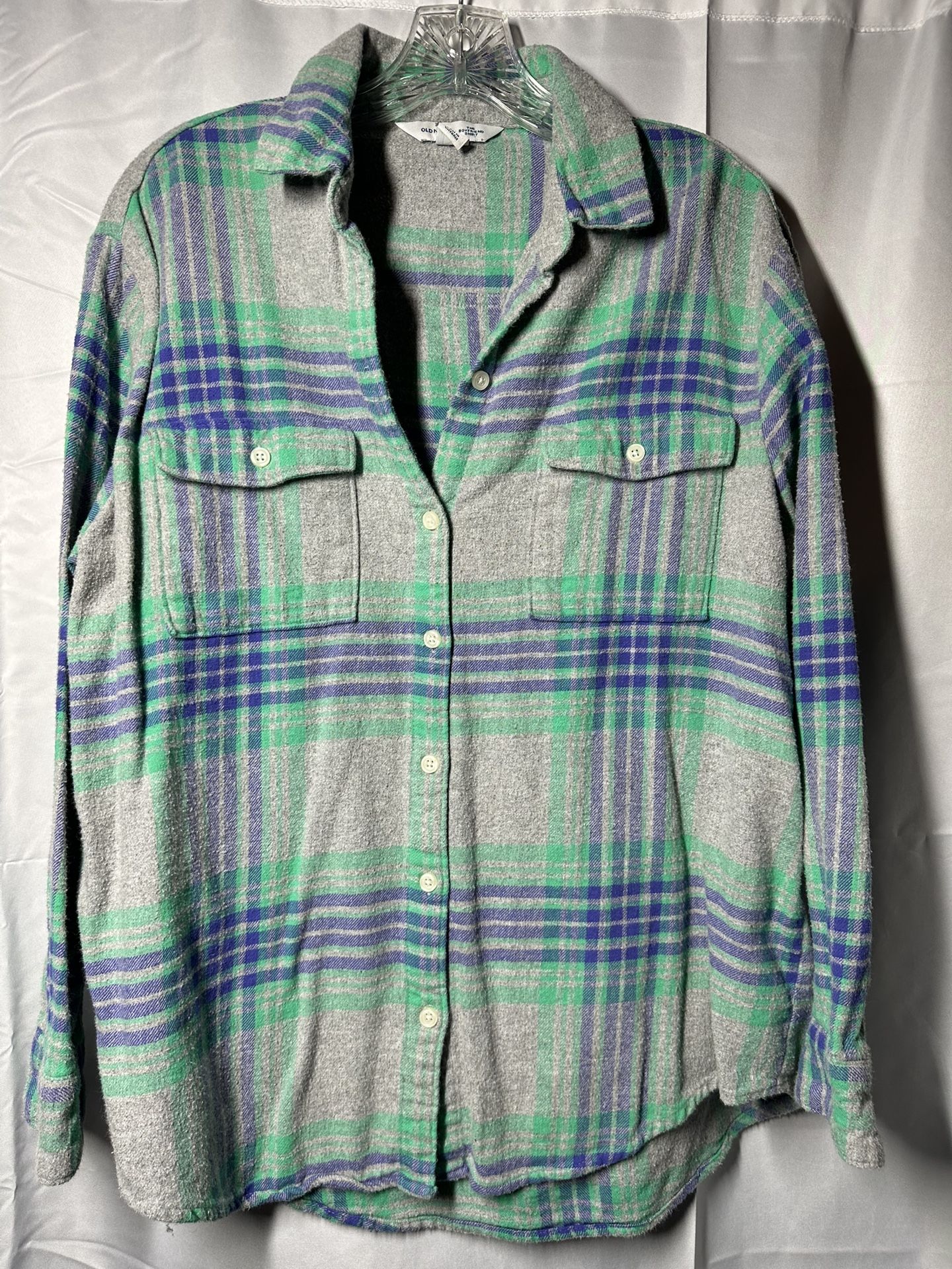 Old Navy Gray, Blue, and Teal Plaid Flannel Button-down Shirt