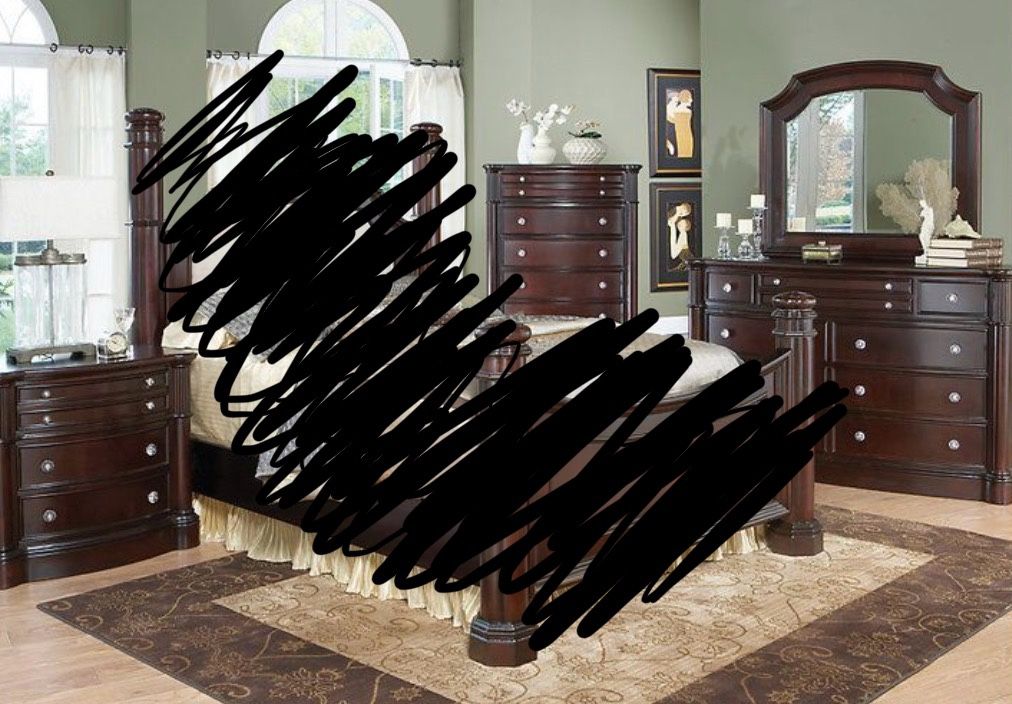 Great condition solid wood bedroom set Normal wear Very heavy, will need at least two people for pick up 900 obo