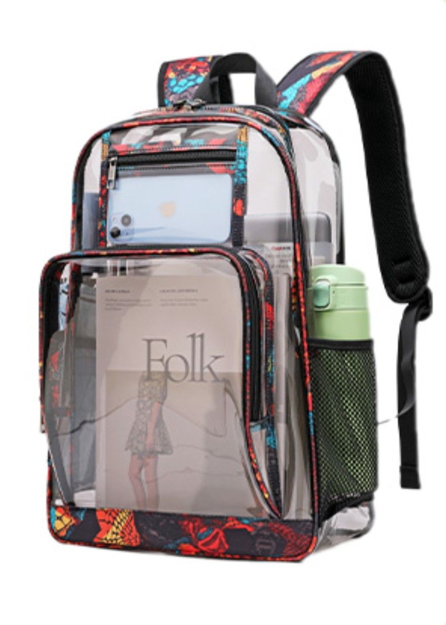 Brand new, large, very cute, and clear back pack with free stickers and keychain.