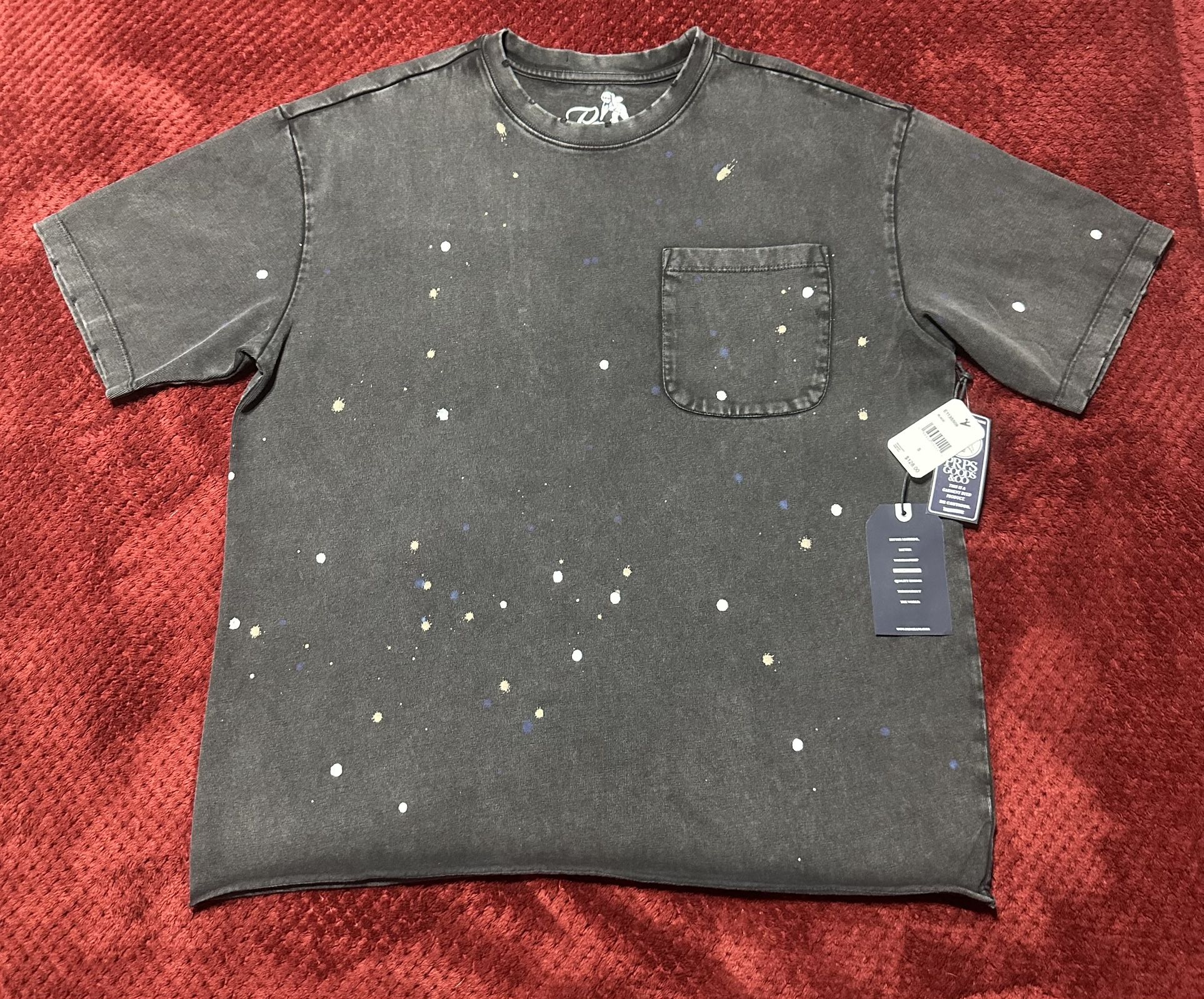 Charcoal tee with subtle speckles. Features a stylish design. Brand new with tags. Retails for $128. Size Small in Men. Will fit Medium as well due to oversized fit.