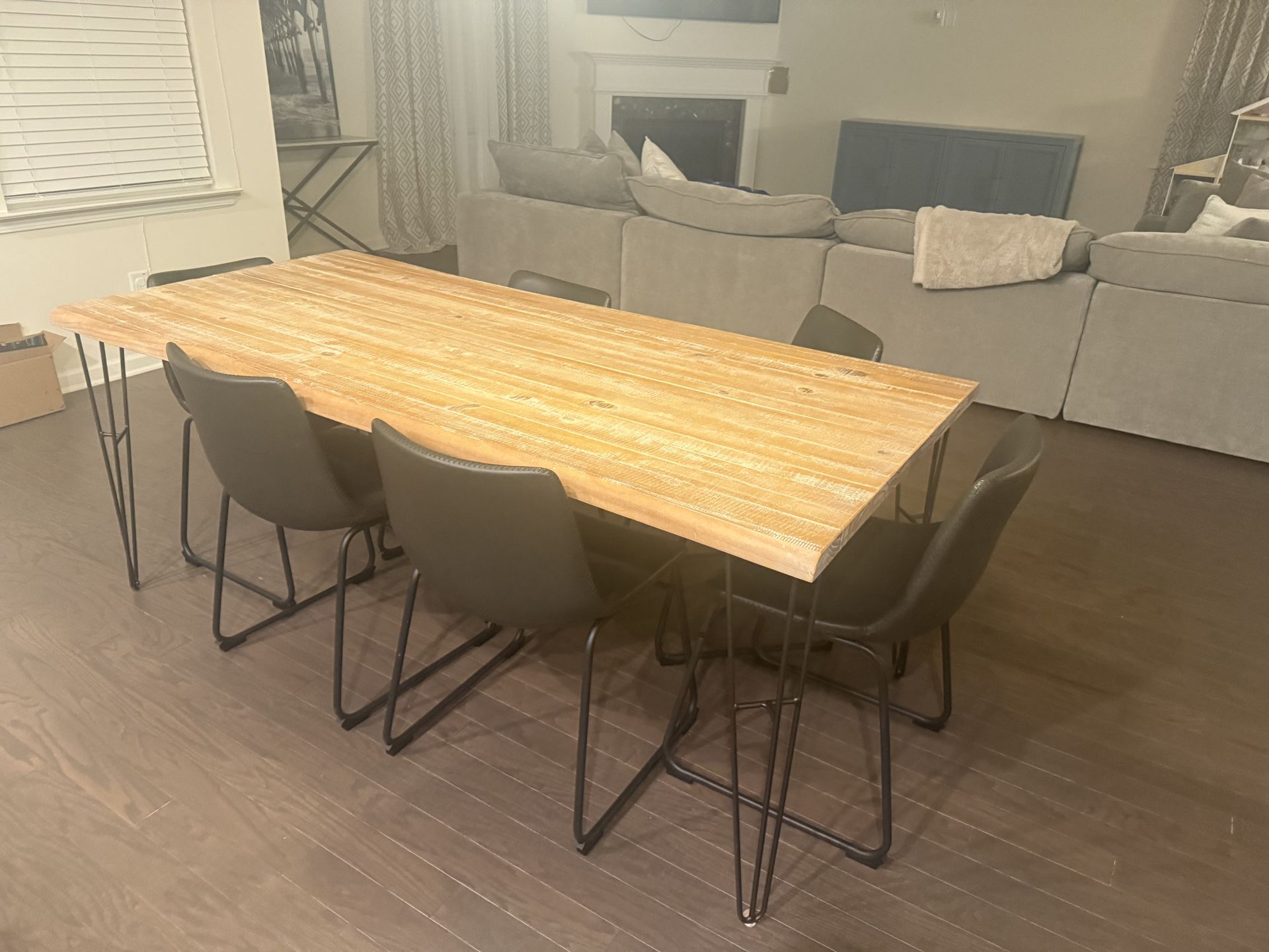 Dining Room Table and Chairs (6) leather Purchased from rooms to go Excellent condition Bethlehem GA porch pickup