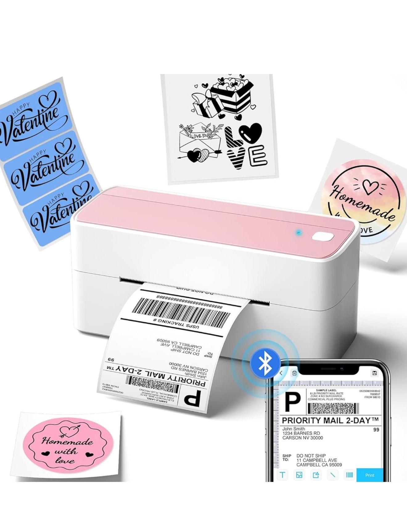 Phomemo Bluetooth Thermal Label Printer, 241BT 4X6 Wireless Shipping Label Printer for Small Business, Pink Label Printer for Shipping Package, Compat