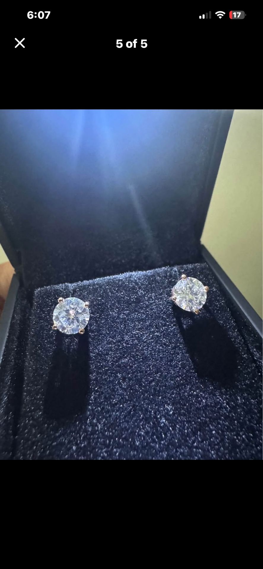 3ct lab grown diamond stud earrings vvs1 E 10k gold plated