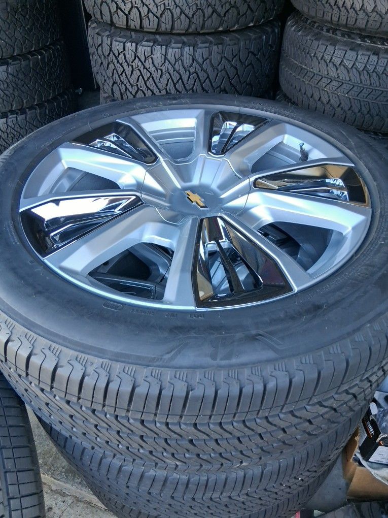 RINES ORIGINALES DE CHEVY SILVERADO HIGH COUNTRY TIENEN LOS TPMS SENSORES EN PERFECTAS CONDICIONES SON R 22 LLANTAS BRIDGESTONE ALENZA 99 % 275/50/R22 SON TAMBIEN PARA CHEVY SILVERADO TAHOE SUBURBAN AVALANCHE GMC SIERRA YUKON DENALI AT4 YNCLUYEN LAS TUERCAS ORIGINALES BOLT PATTERN 6X139.7 $ 1899