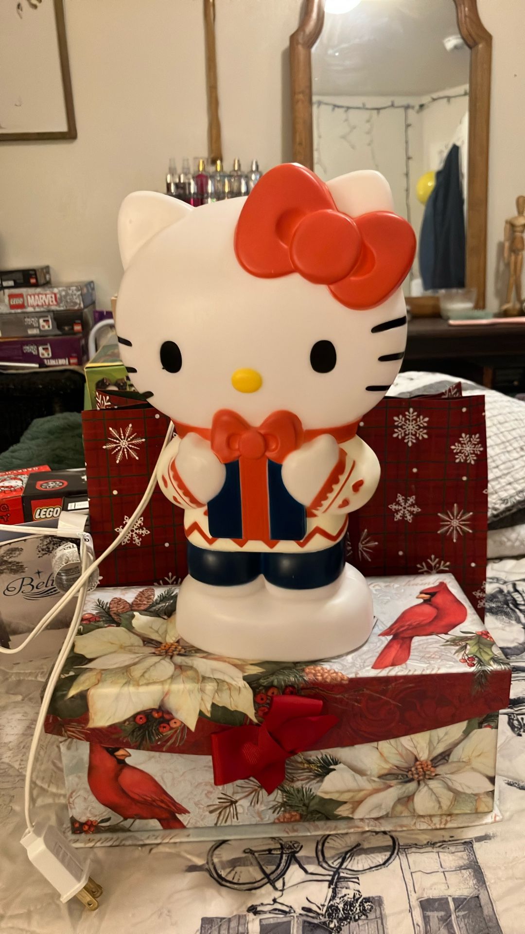 Hello Kitty is all ready for Christmas and looking for her forever home. She would be great for a child’s nite light at bedtime.