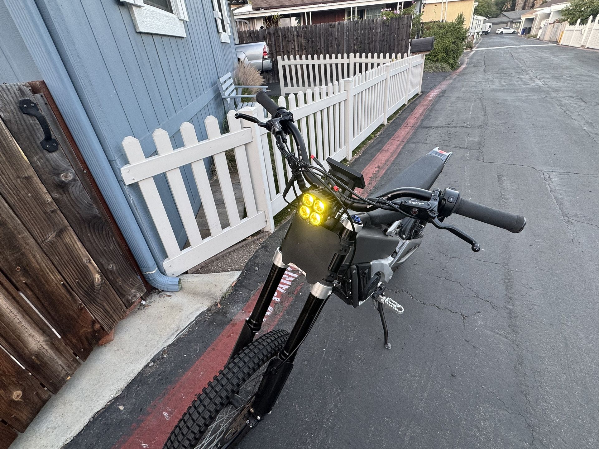 Very good bike. I’ve had a lot of fun with it. Comes with an upgraded screen, upgraded light, shinkos, new rear break, and a grey painted body. Has 2281 miles. Comes with all 4 original keys, and charger. Will also come with a bike lock. Suspension is adjustable, so you can make it really cushiony or stiff, depending on your riding style. Feel free to ask me any questions.