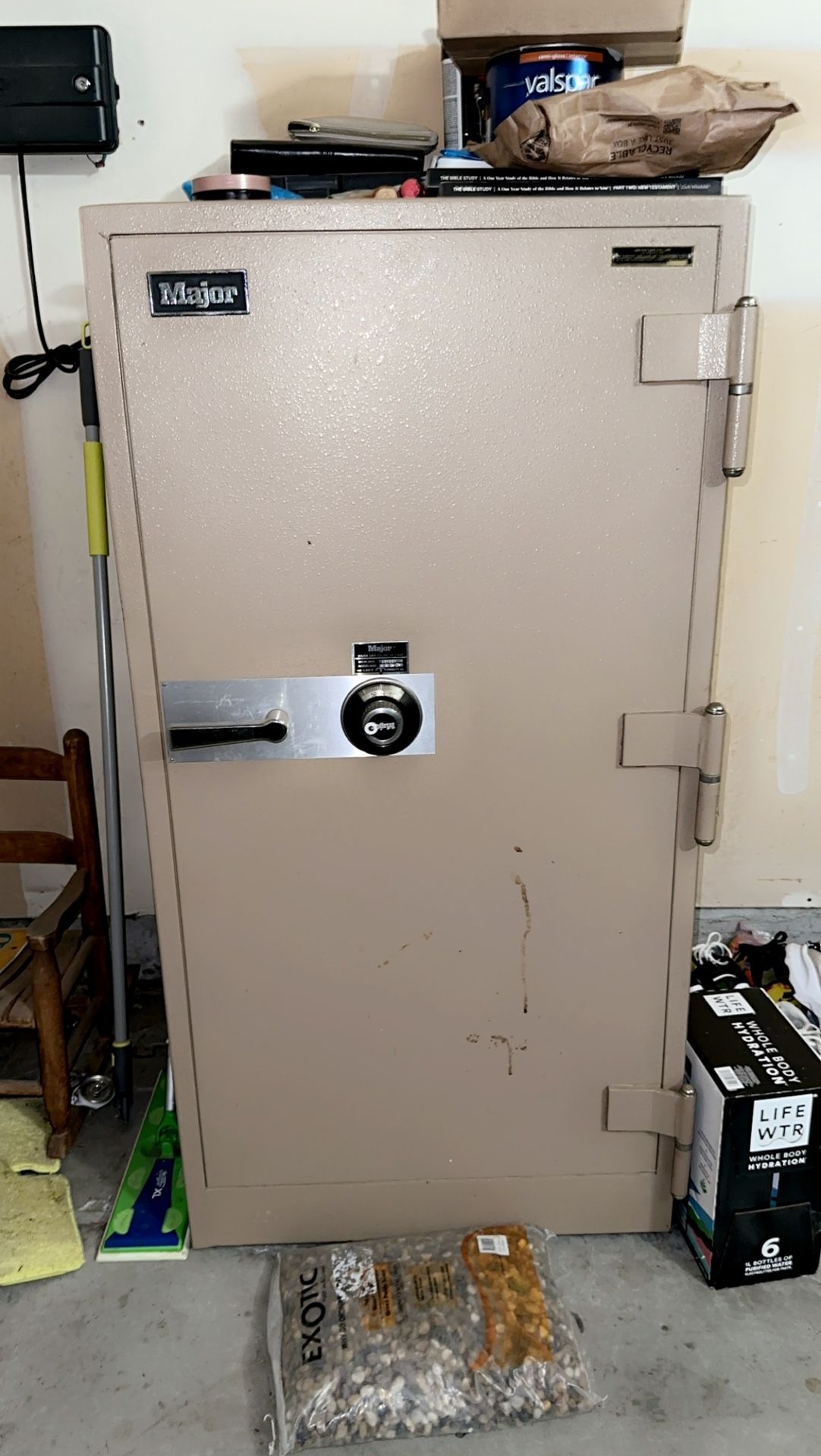 Do not have combination to lock. Needs to be re-locked. Stands approx 4-5 feet tall.
