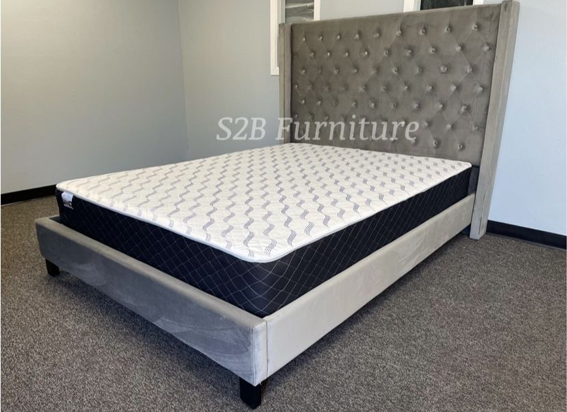Queen Grey Euro Wingback Bed With Ortho Mattress Included