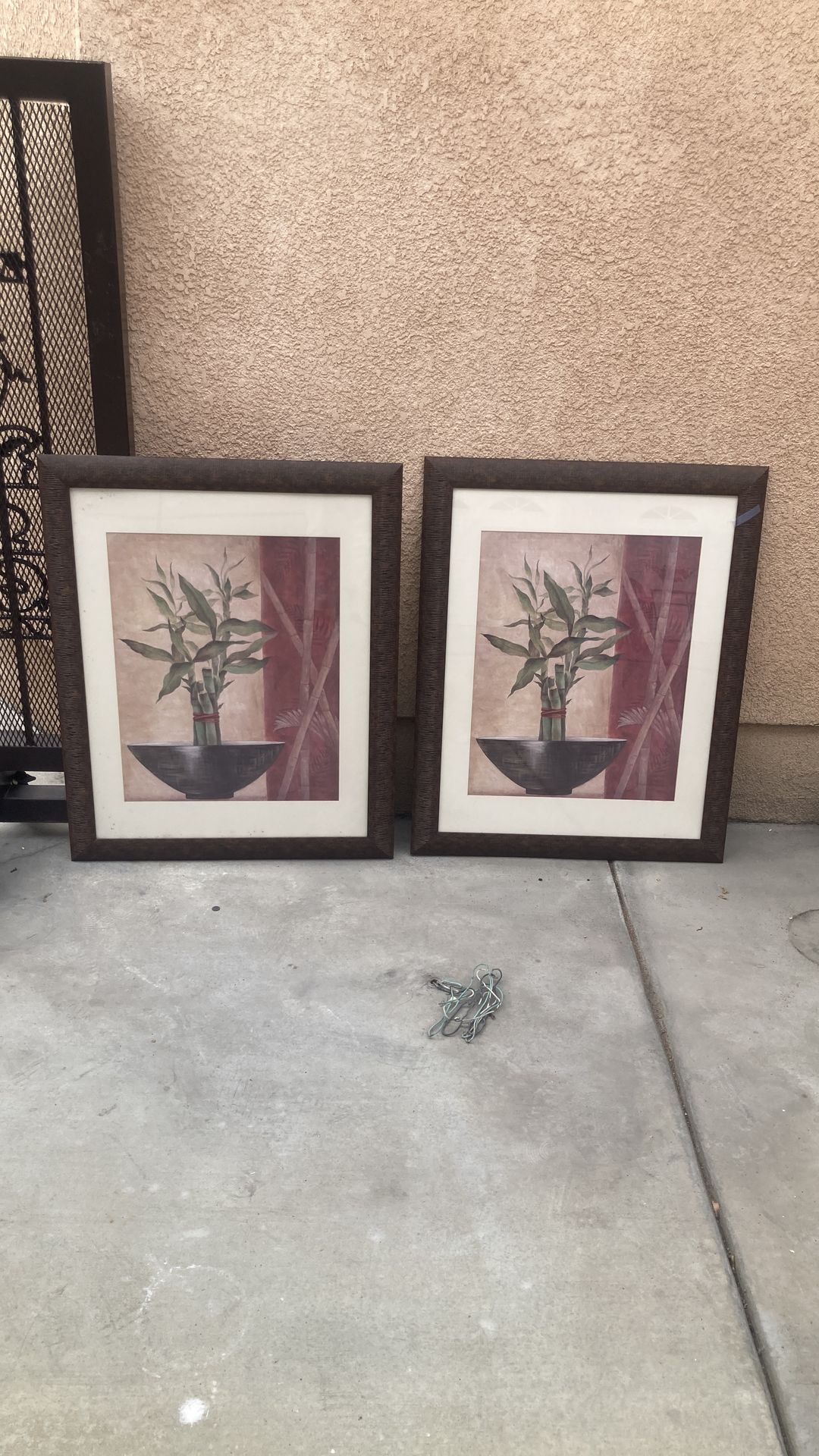 Beautiful matching framed prints featuring a calming botanical design with warm neutral tones. The dark wood frames give them a clean, modern-classic look that works well in living rooms, bedrooms, offices, or entryways. • Matching set of two • Solid, sturdy frames • Ready to hang • Great condition Perfect for adding a stylish, cohesive touch to any space.
