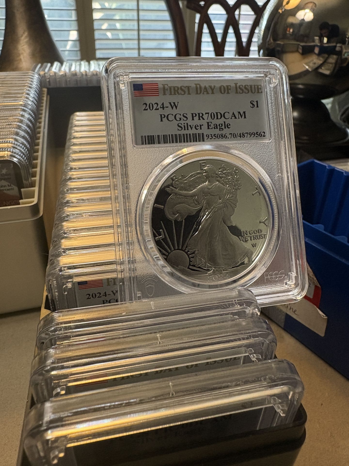 Graded proof silver eagles stuck at Westpoint & Philadelphia Mint. Graded by PCGS pF70 Deep cameo