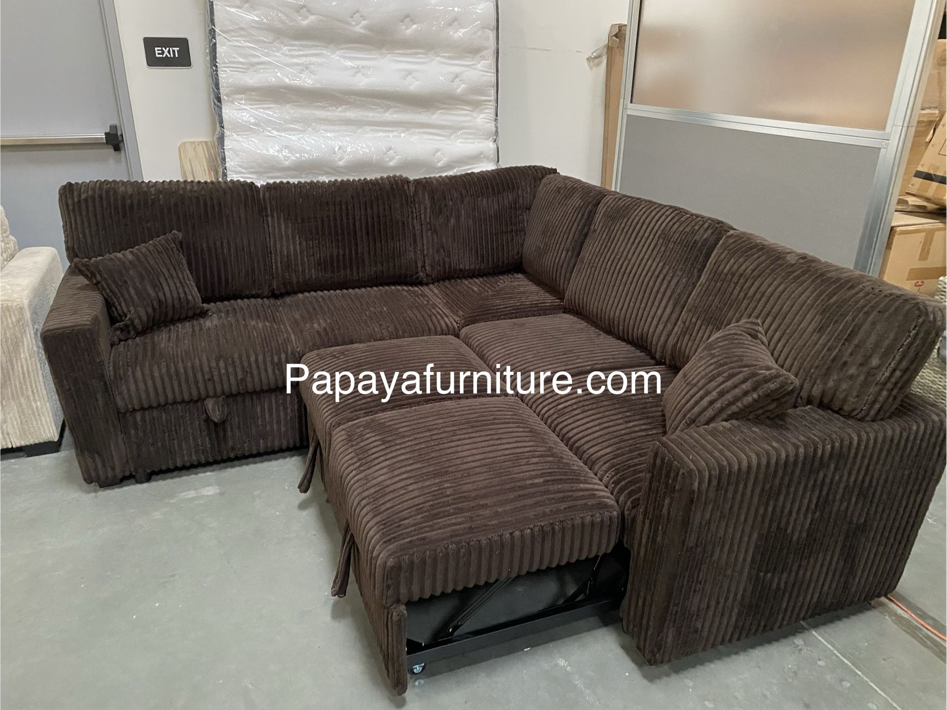 New! Plush Chocolate Sectional Sofa Bed With Storage, Brown Sectional, Sofa, Couch, Corduroy Sectional Couch With Pull-out Bed, Sofabed, Sleeper Sofa