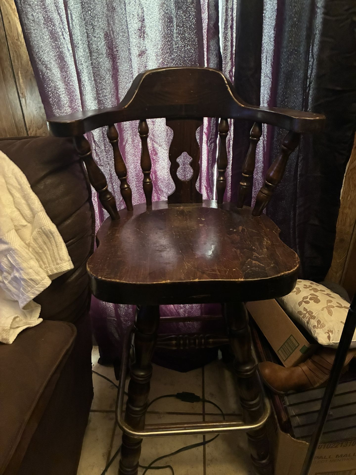 Brown half circle wooden bar , with 2 Wooden bar stools .. Everything in GREAT CONDITION.. asking for 200$ OBO