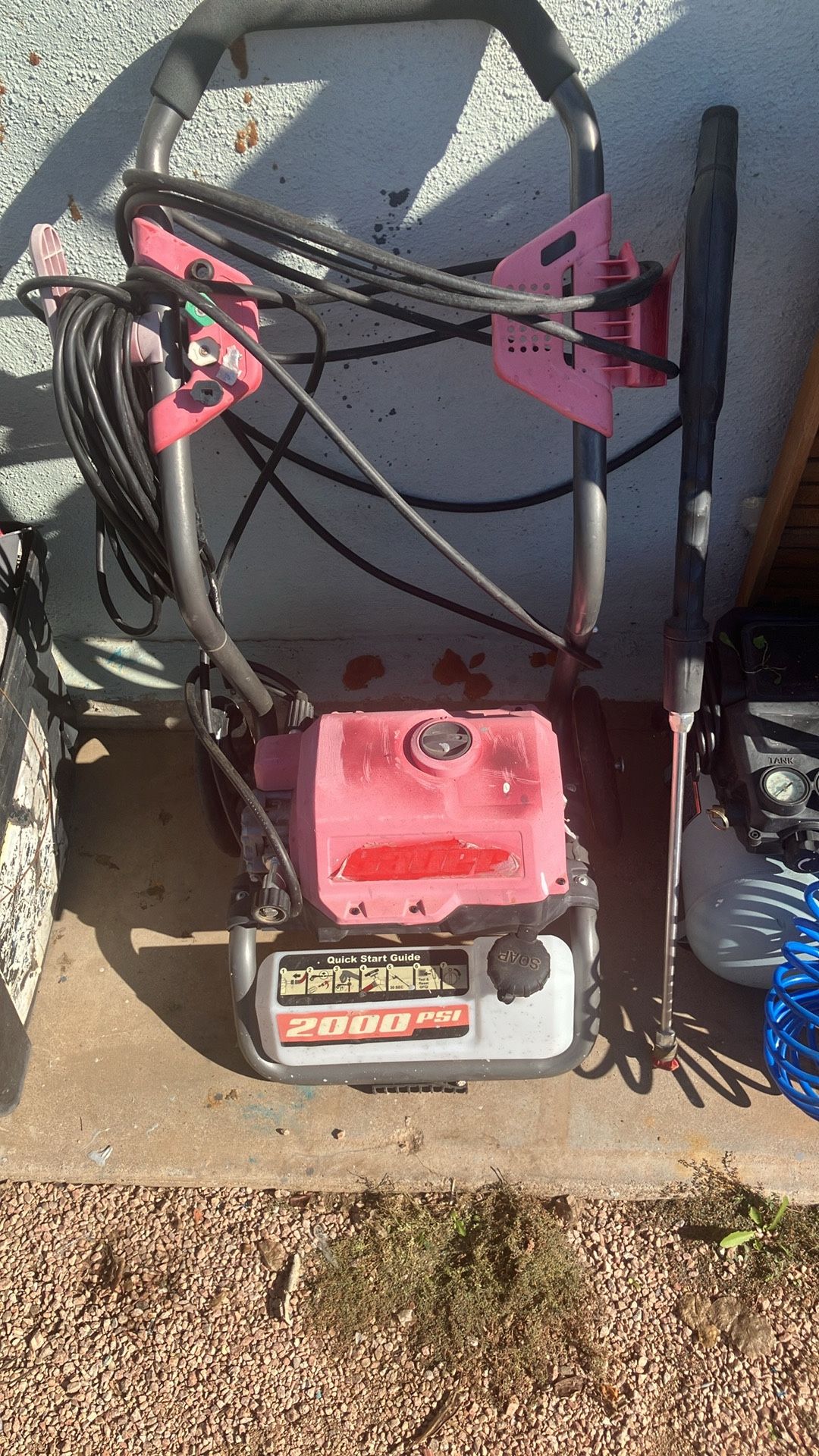 Bauer Electric Pressure Washer, all the different tips and an additional Dewalt surface washer attachment Only thing is the soap dispenser doesnt work