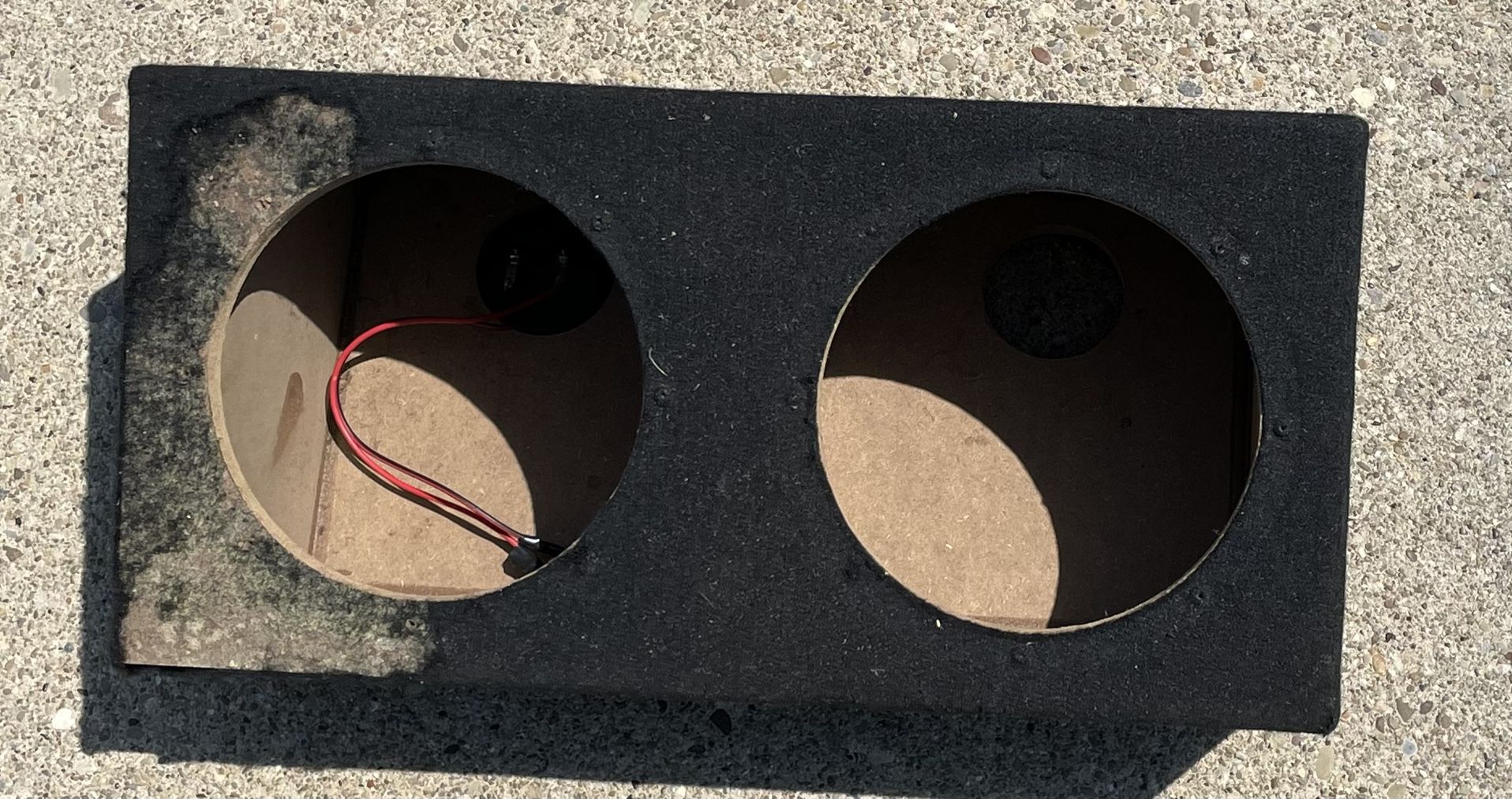 Dual 8” enclosed sub box. It Could use some new skin. Box is in good sturdy condition over all. 7” opening 20.5” long 9.75” high Width tapers up. 9.5” bottom 7” top Nice and compact. Offers or question please contact, thank you.