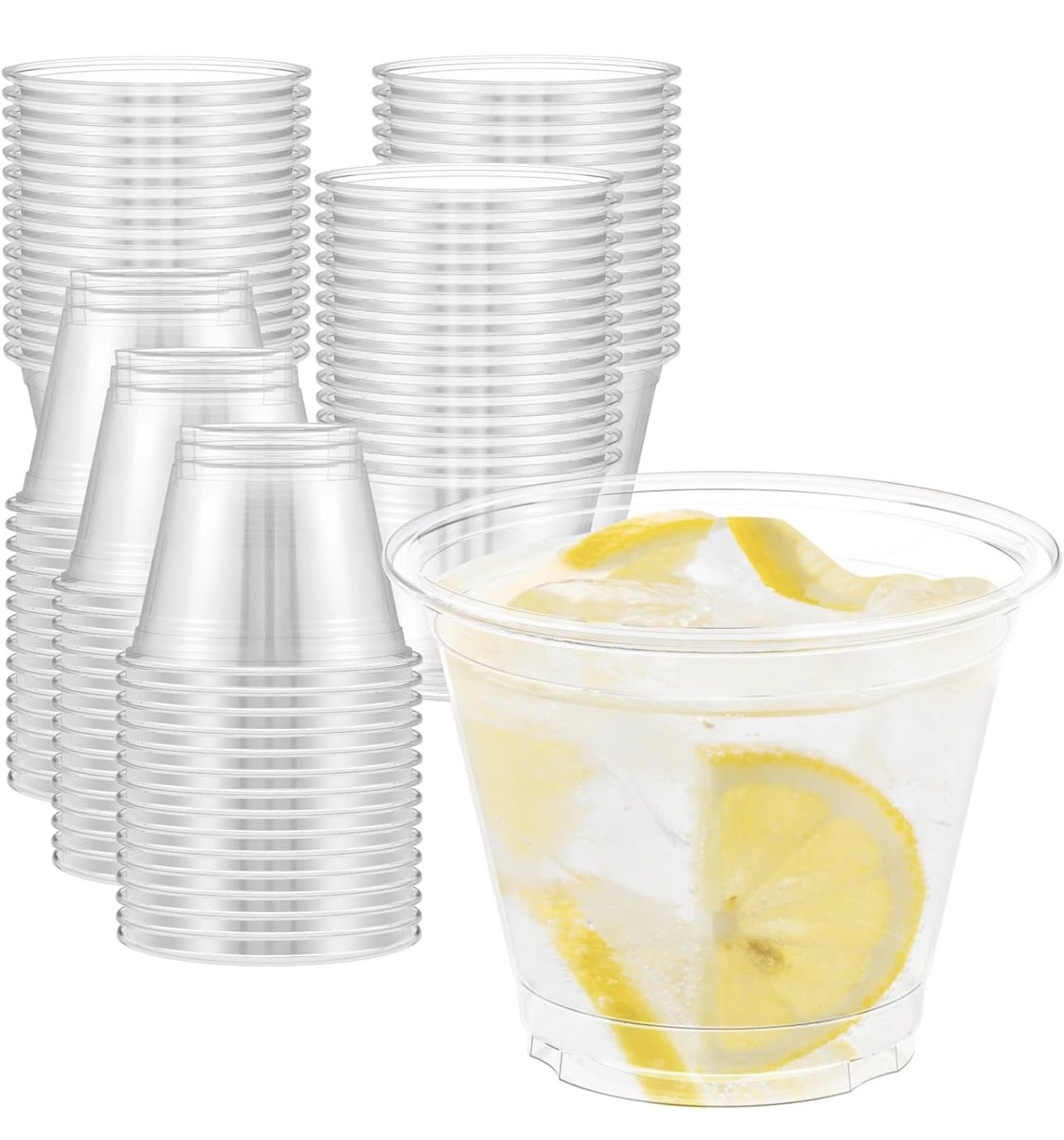 100 Pack 9 oz Clear Plastic Cups, Sturdy & Food Safe Disposable Plastic Cups for Wine Cocktail Punch Open box item. Asking $5 Must be willing to pick up. Located by Craig ranch park.