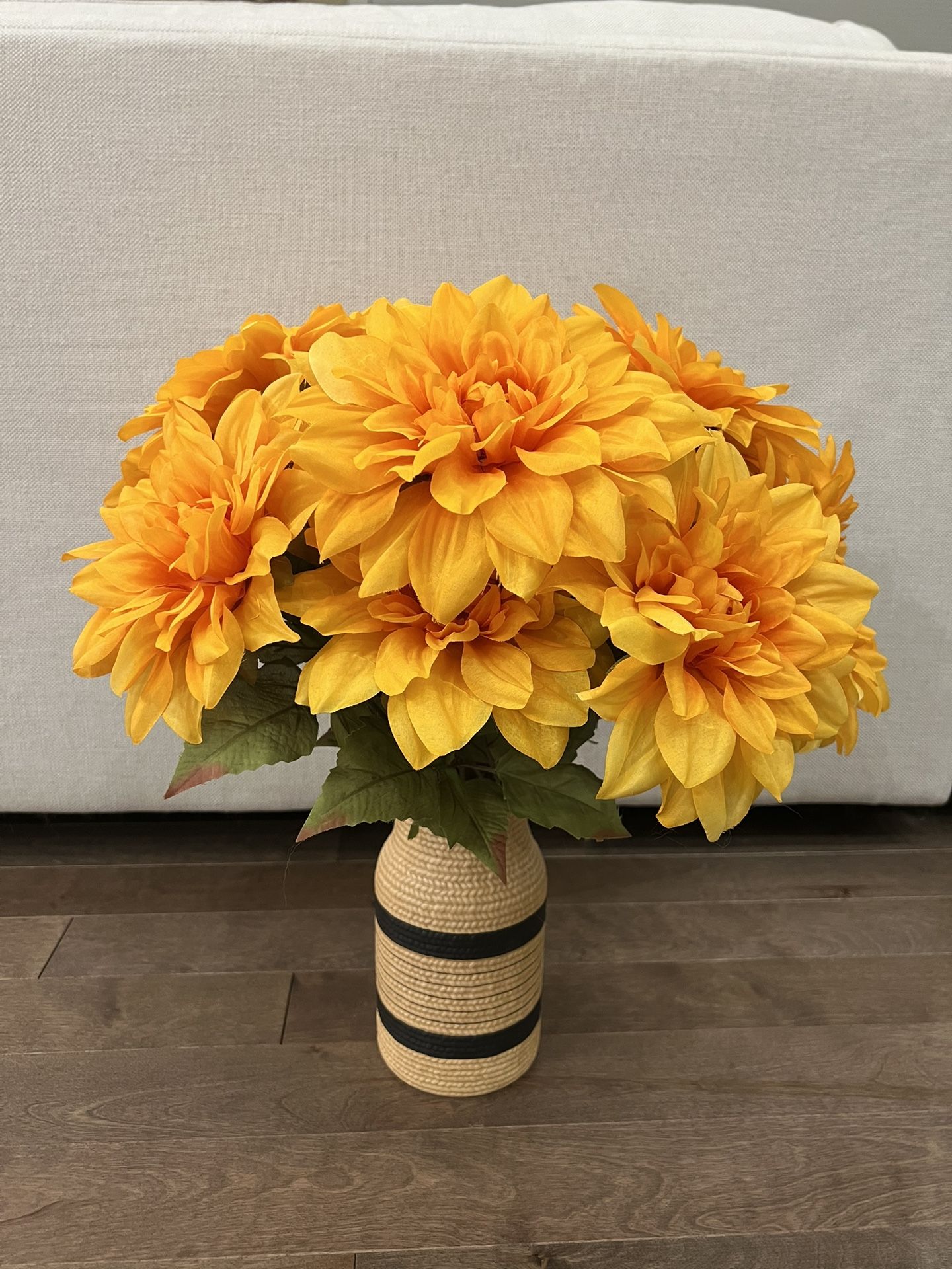 Ceramic Woven-Style Vase with Faux Yellow Flowers