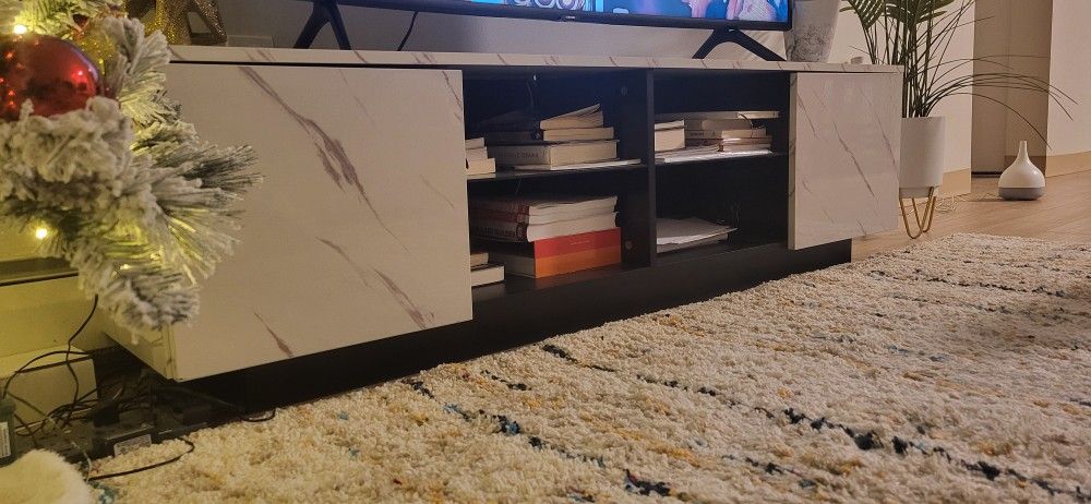 LED TV Stand for 50/55/60/65 inch TV, Modern Marble Wood Television Table with Storage and Glass Shelves, High Glossy Entertainment Center for Living Room, (White Marble Color)