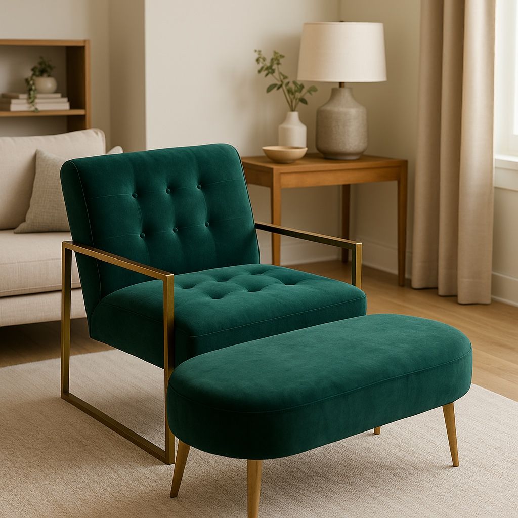 Stylish accent chair with matching ottoman — perfect for adding comfort and character to any room. Modern design with a cozy, supportive seat and a versatile ottoman that can be used as a footrest or extra seating. Ideal for living rooms, bedrooms, reading corners, or offices. Comfortable, functional, and visually appealing.