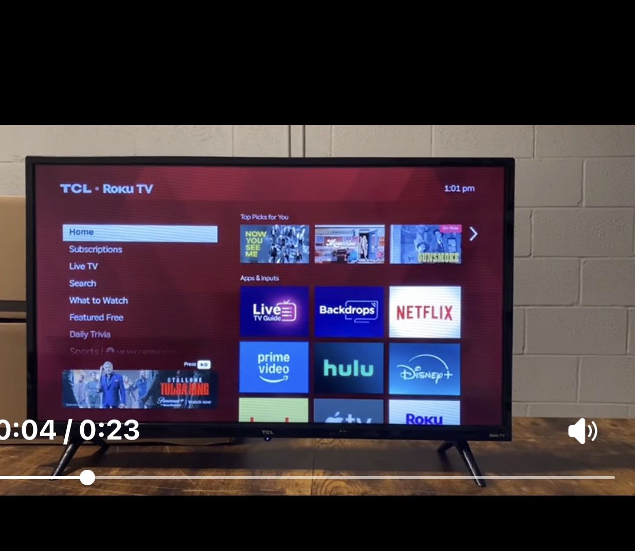 Excellent Condition Roku smart Television with remote . It was in a guest room and Florida guests don’t wanna sit around watching TV. It was probably turned on only 4 to 5 times! Like New a lot of people
