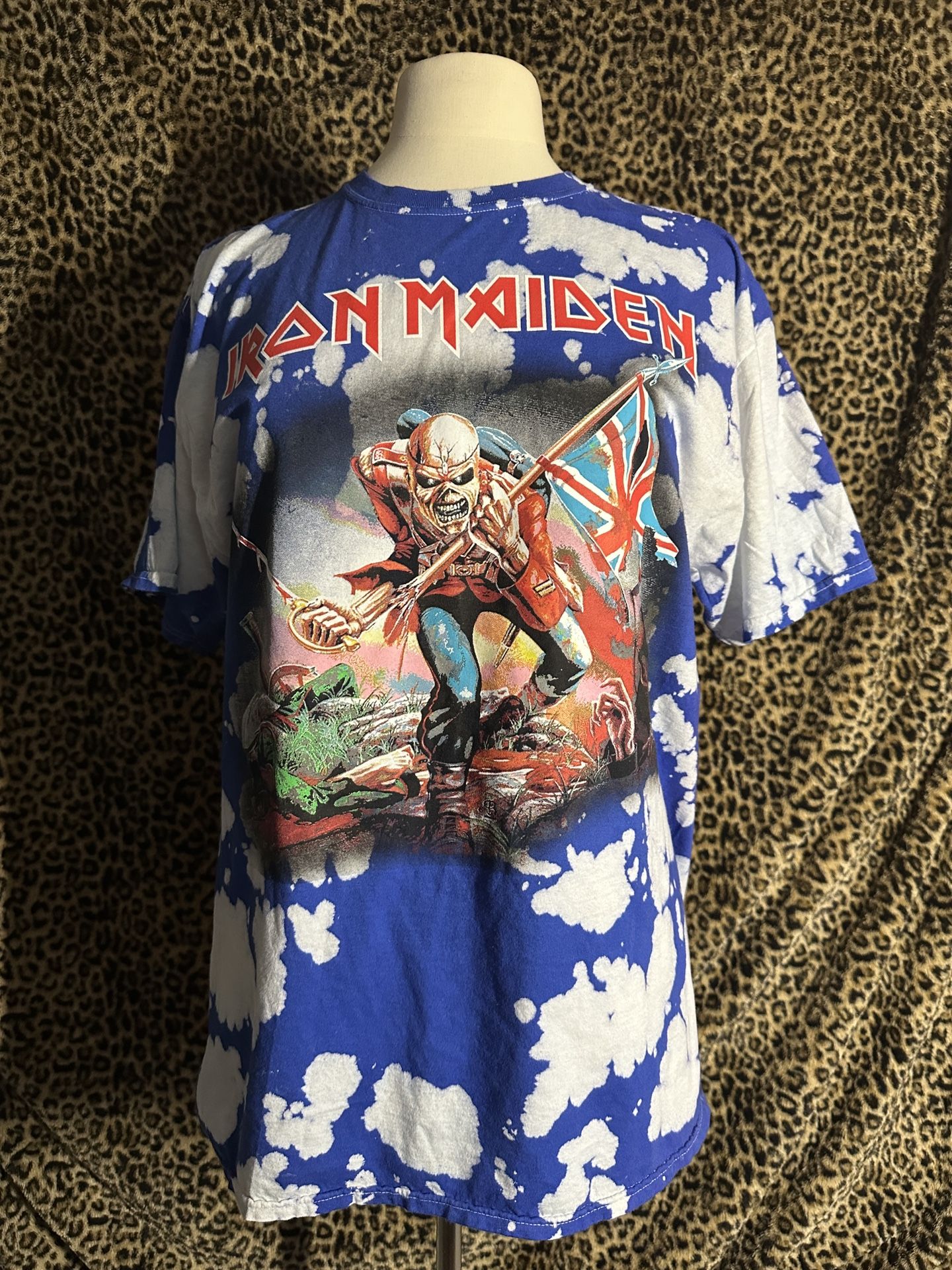Blue Tie-Dye Iron Maiden Graphic Tee Band T-Shirt Top Merch Splatter Skeleton