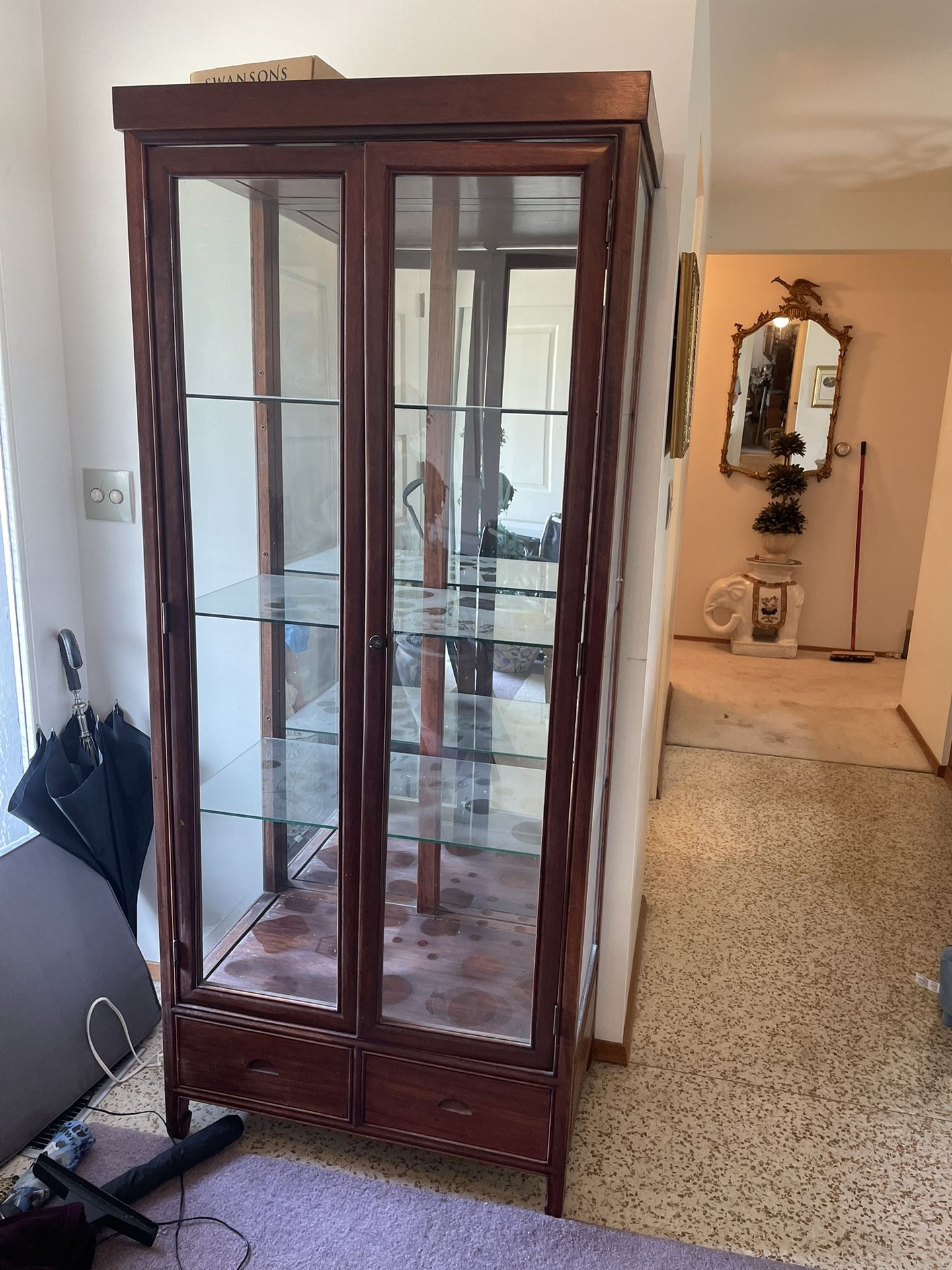 This is a nice antique display cabinet not a cheap one this is in great condition with glass shelves and solid wood. This is not $10 i am looking for the best offer