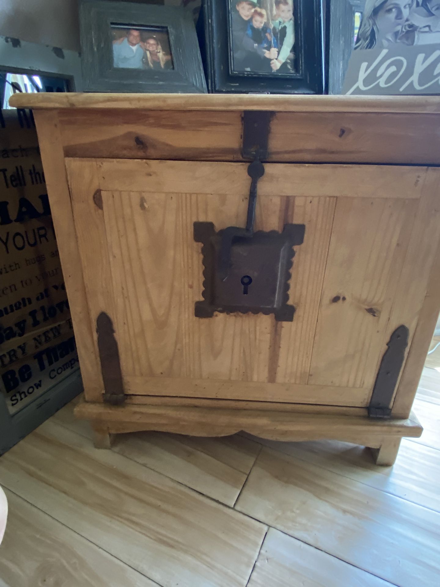 Antique solid oak end table and / or night stand. The front opens up and has plenty of storage. Beautiful piece of furniture. Retails for over $300.00. Asking $75.00.